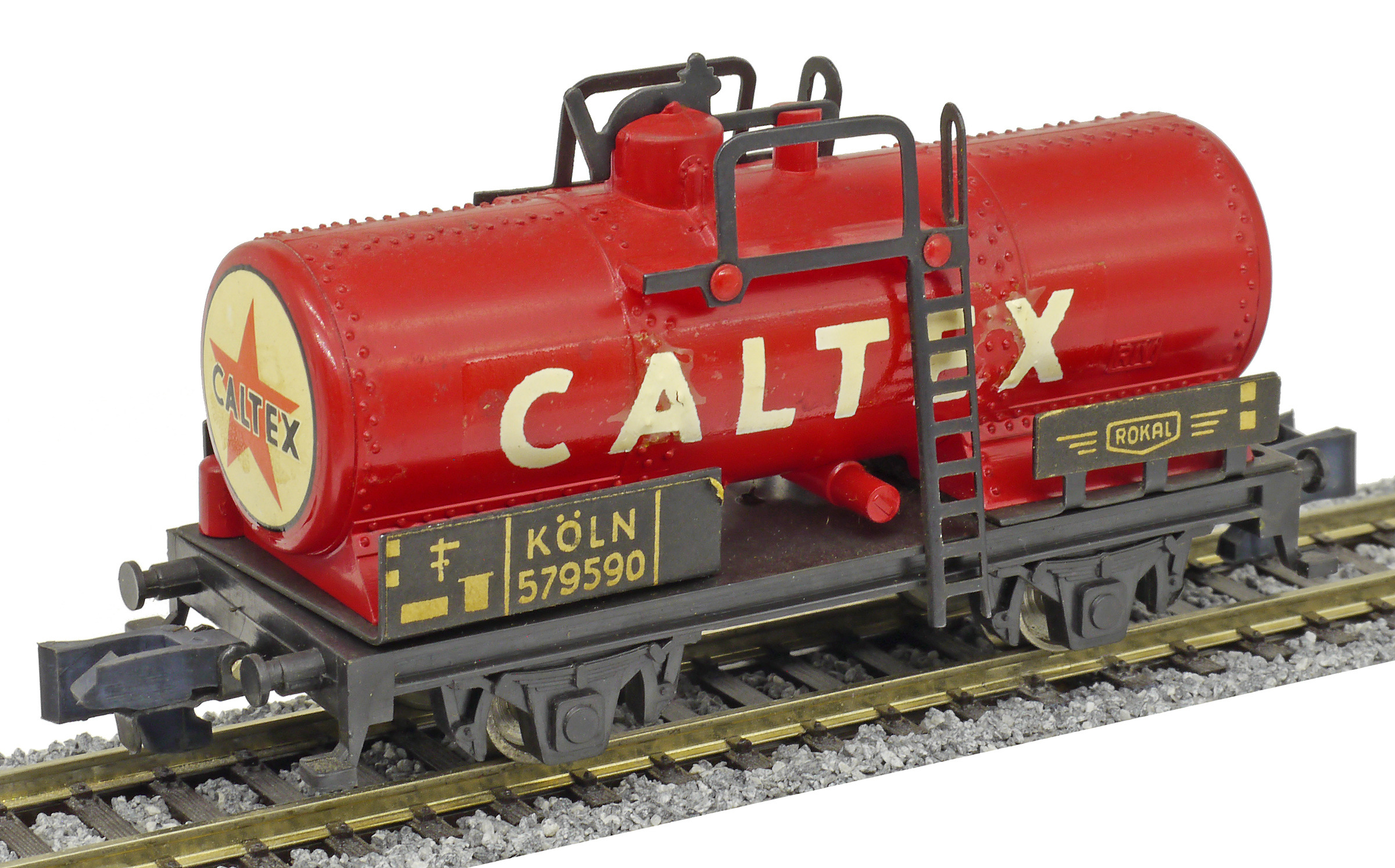 kotlový vůz červený s nápisem „CALTEX“