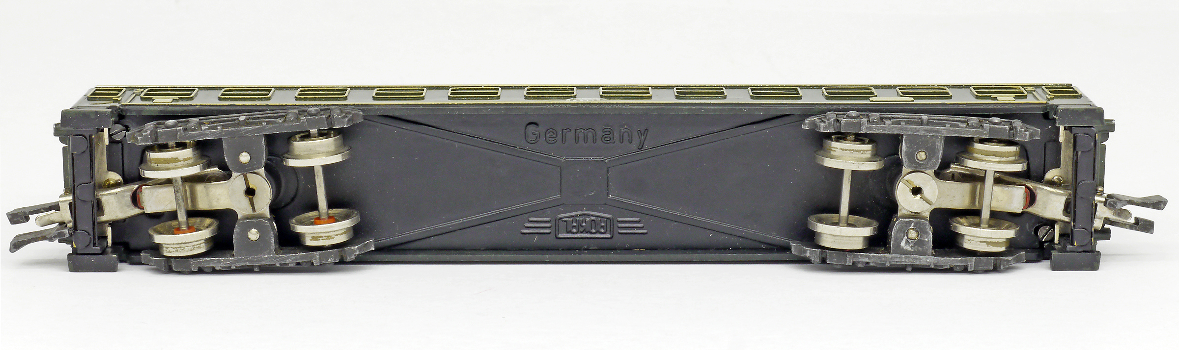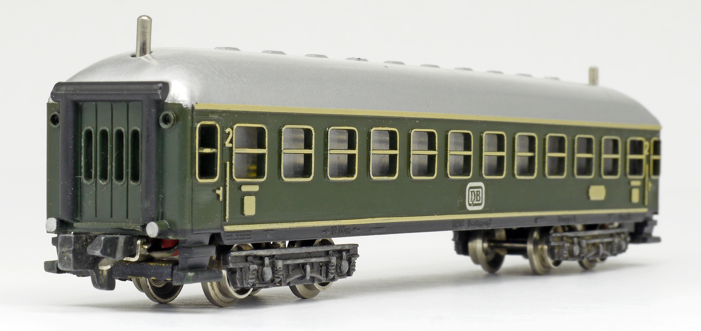 rychlíkový vůz zelený s šedou střechou 2. tř.