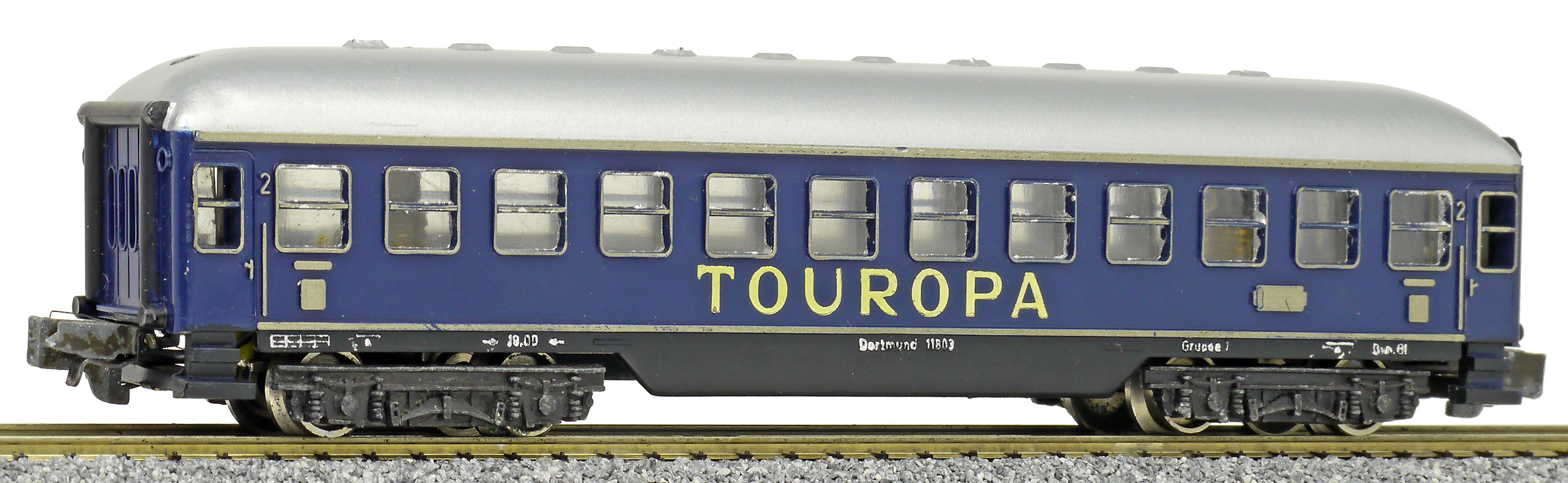 lehátkový vůz modrý s šedou střechou 2. tř. „TOUROPA“