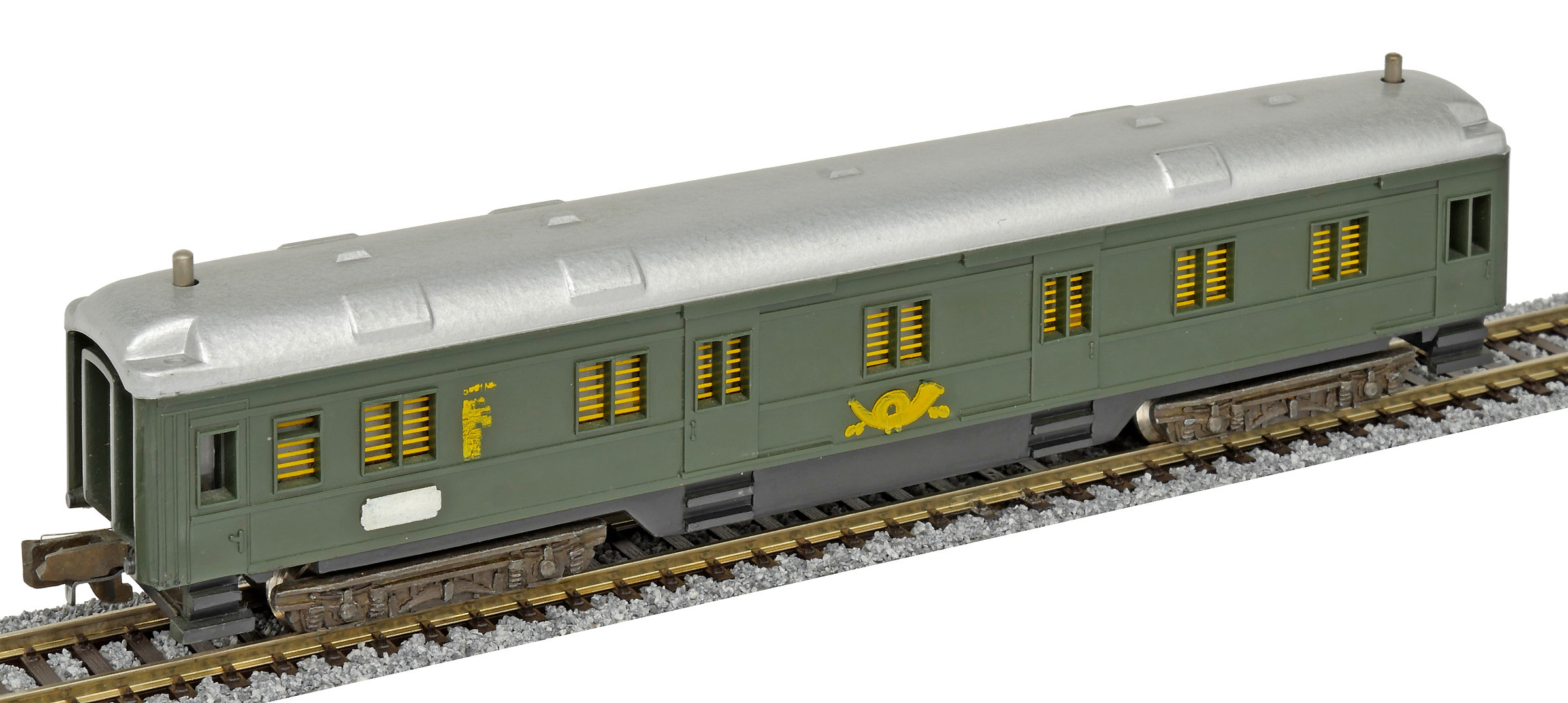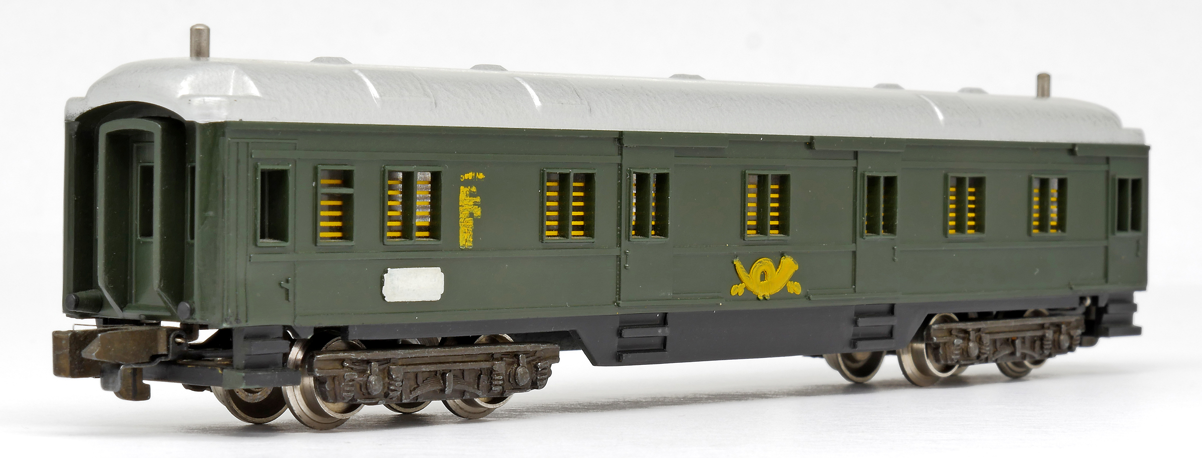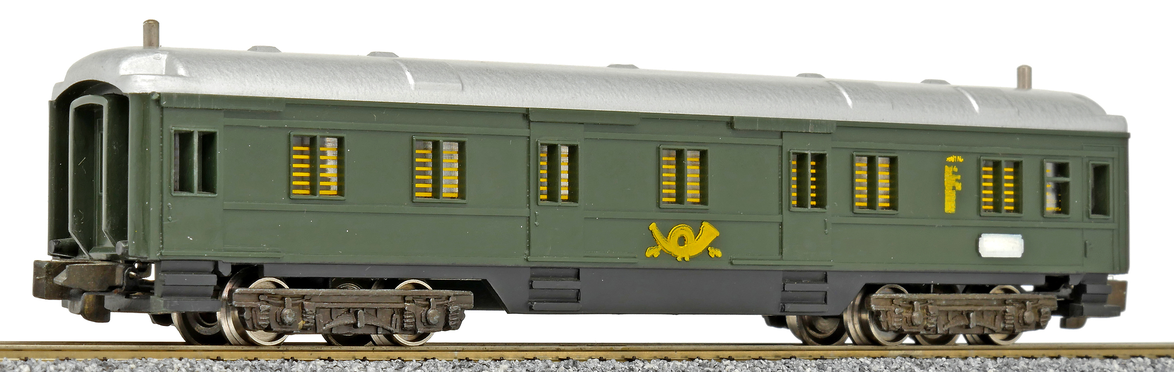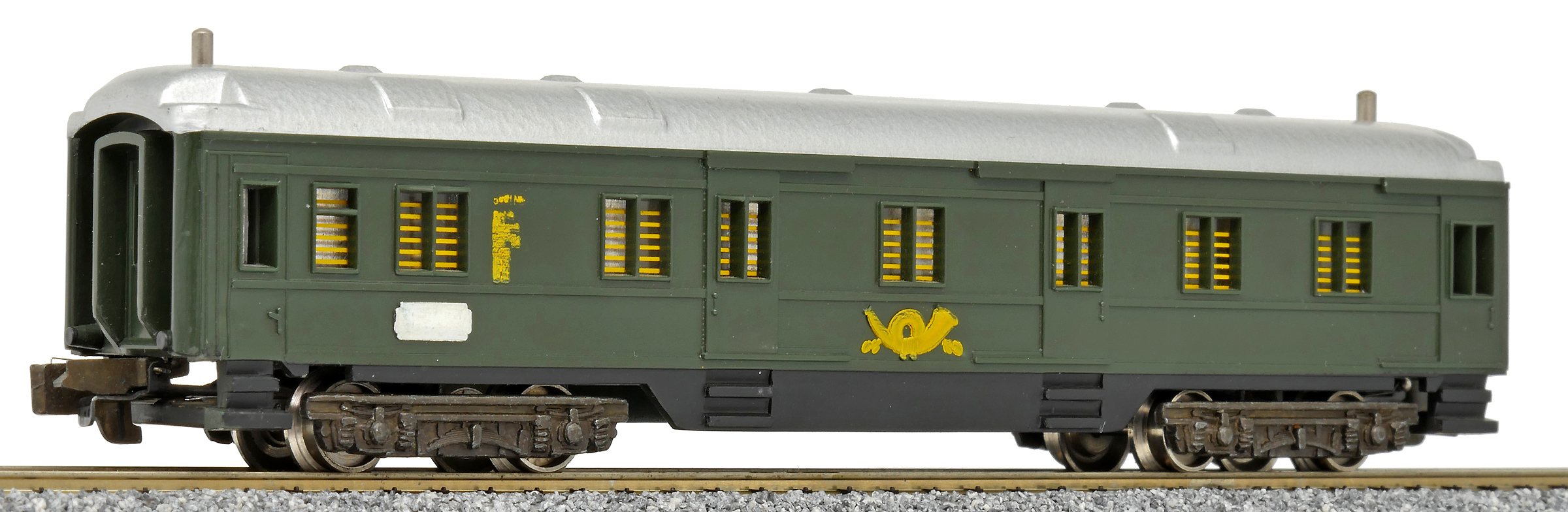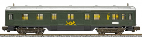 Osobní vozy --> Spěšné a osobní --> 2-osé a 3-osé rekonstruované --> [Tillig] [zelený s šedou střechou a záplatami, služební vůz]