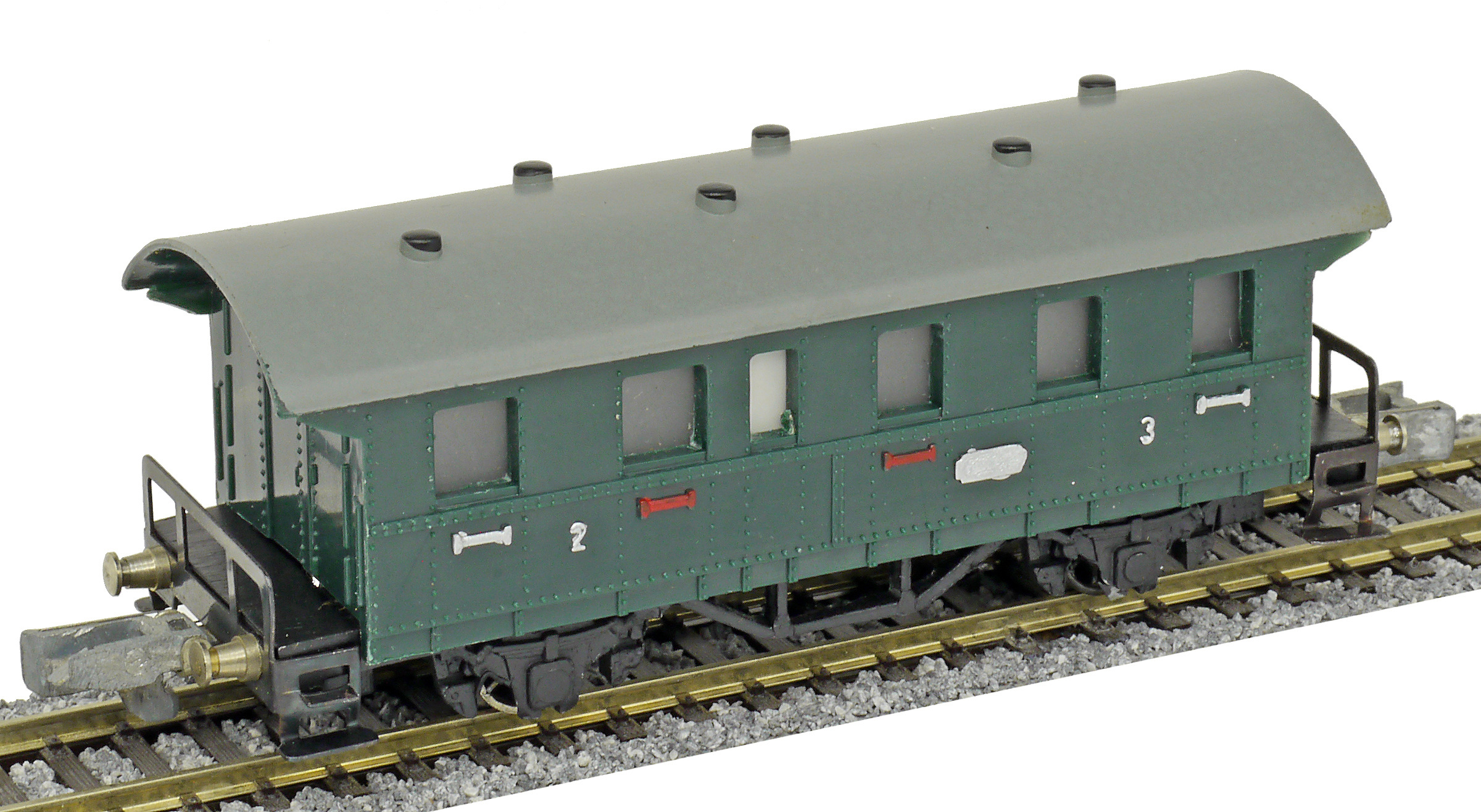 | osobní vůz zelený s šedou střechou 2./3. tř. |