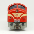 měřítko 1:120 - rozchod kolejí 12 mm osvětlení - 3 reflektory přepínatelné podle směru jízdy osvětlení - žárovky 4 hnané nápravy 0 bandážovaných náprav nenormované uchycení spřáhla digitalizace možná jen s úpravami 158 mm - celková délka modelu přes nárazníky 6 - celkový počet náprav nebo rozložení náprav 211 g - hmotnost brutto - model včetně prodejního obalu 163 g - hmotnost netto - pouze model