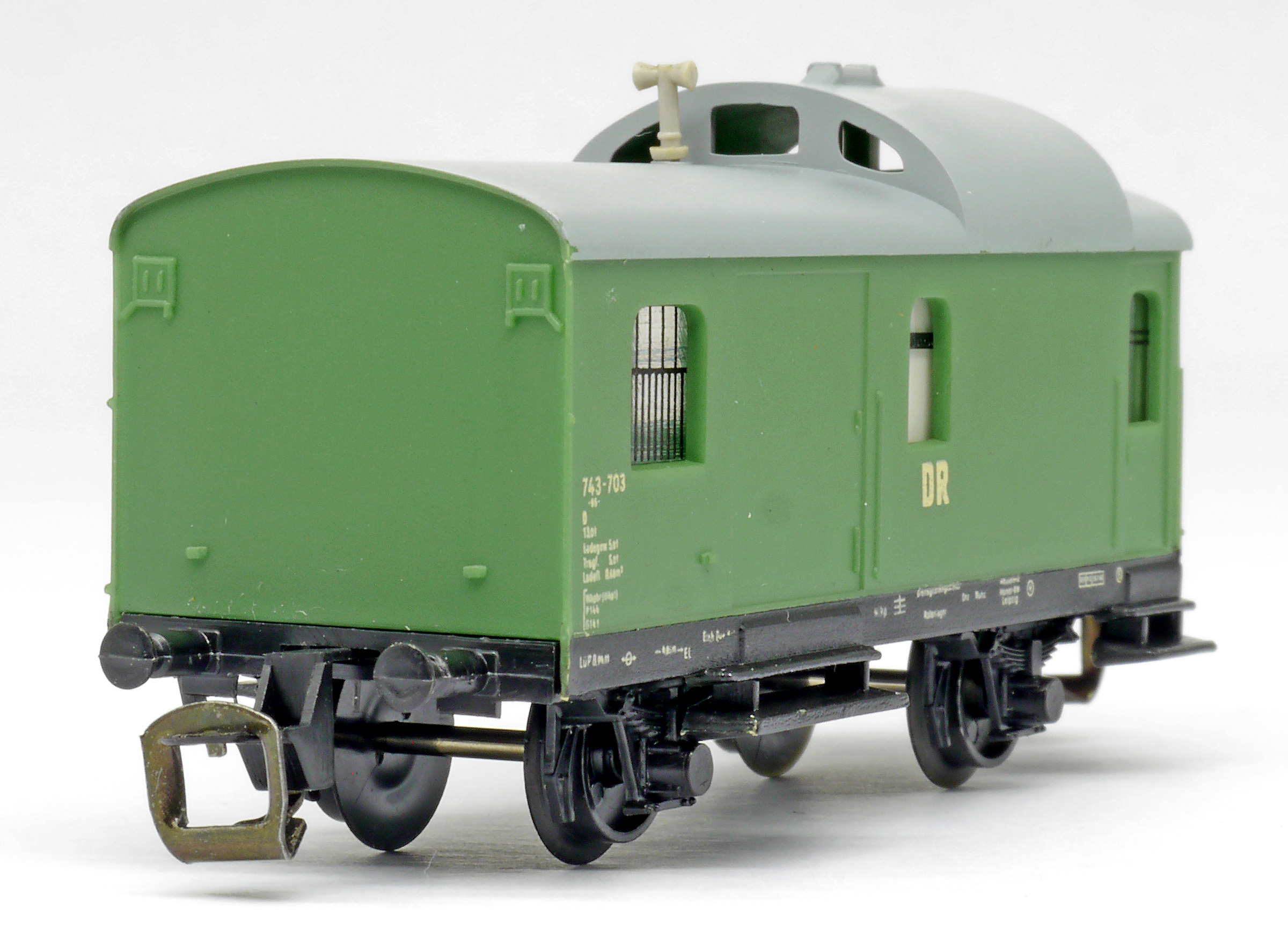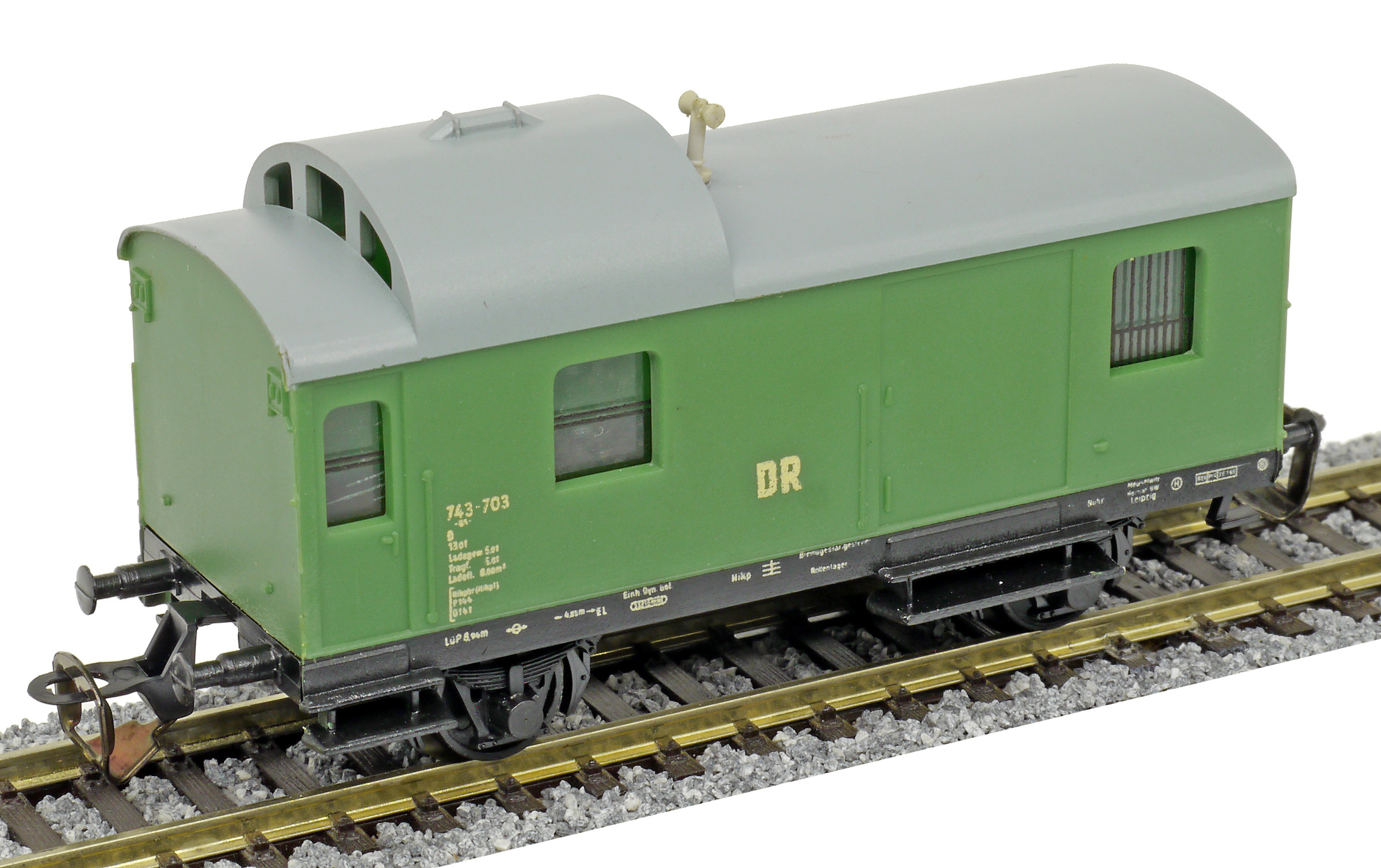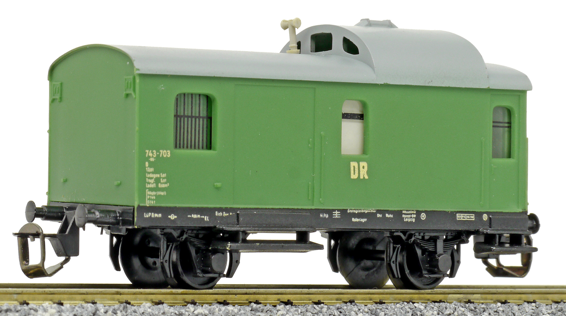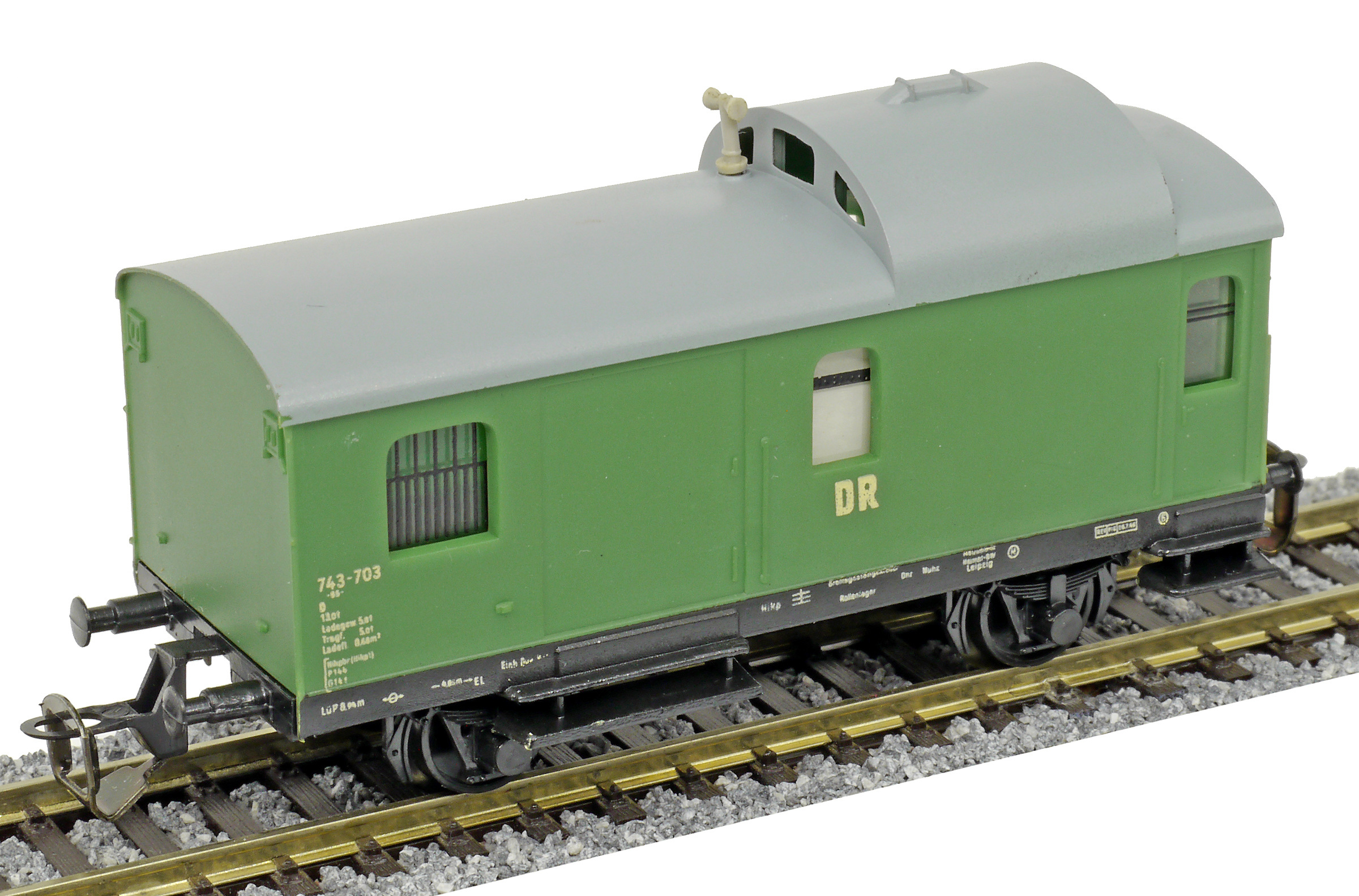služební vůz pro nákladní vlaky zelený s šedou střechou