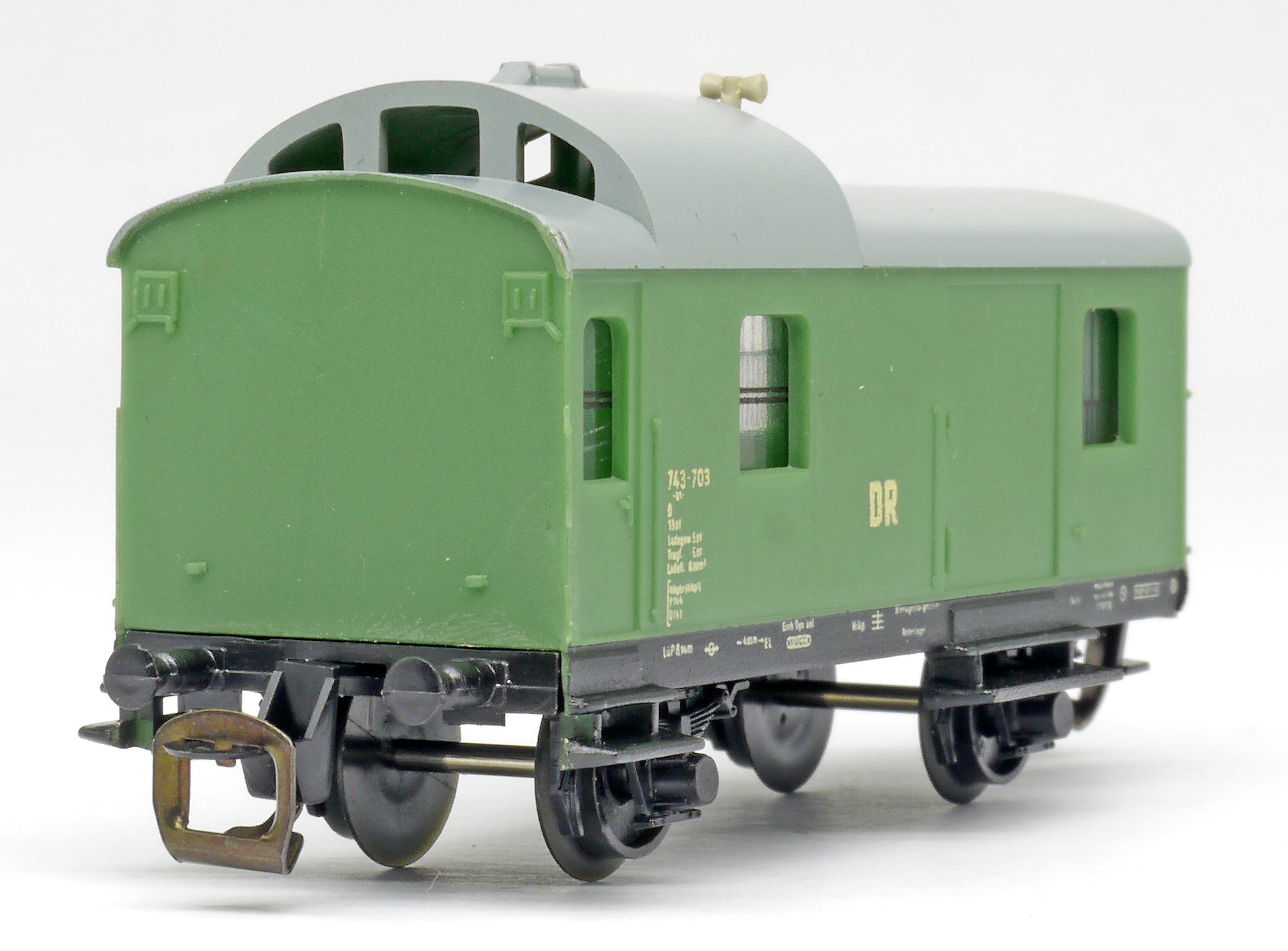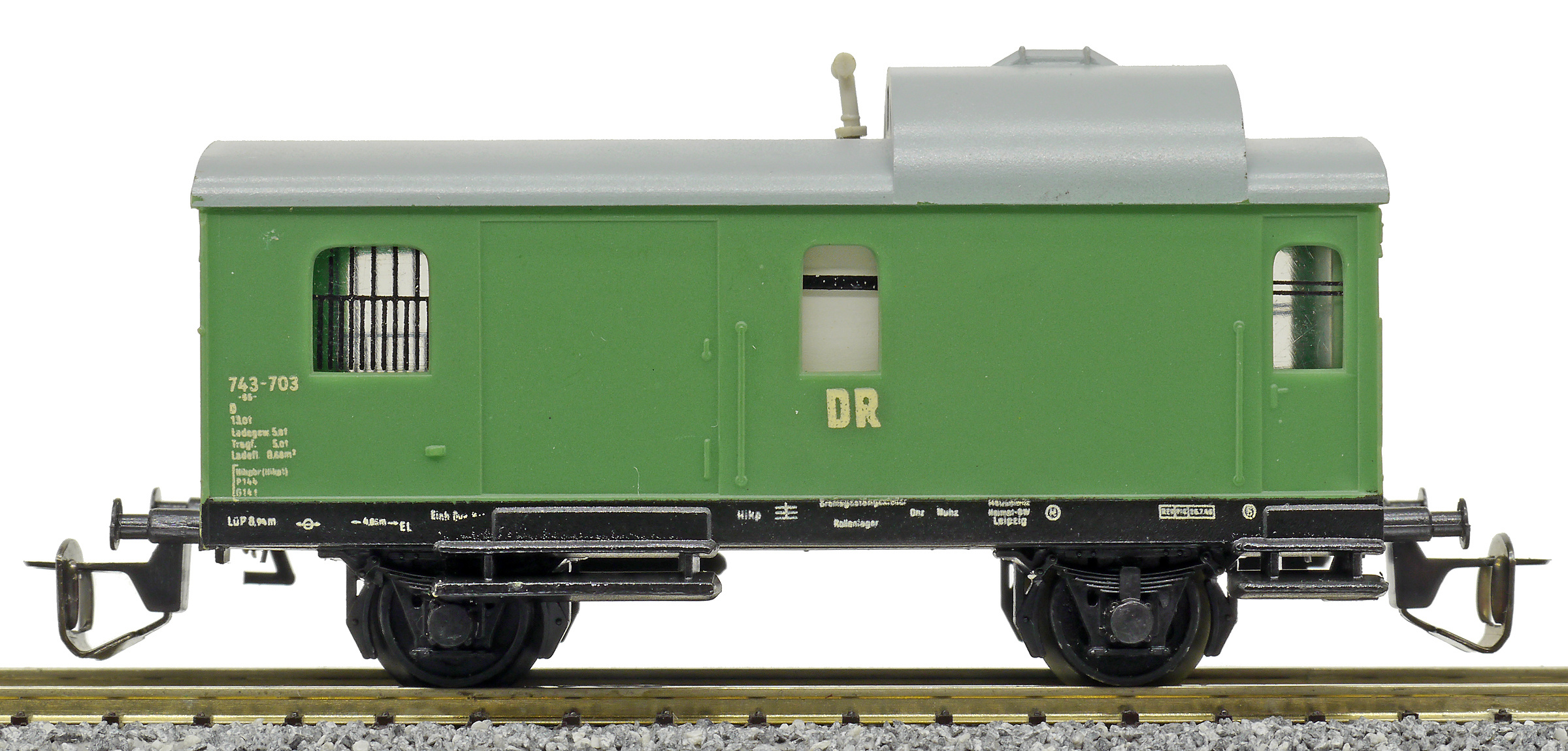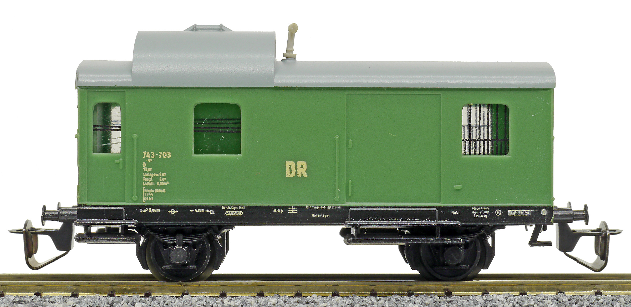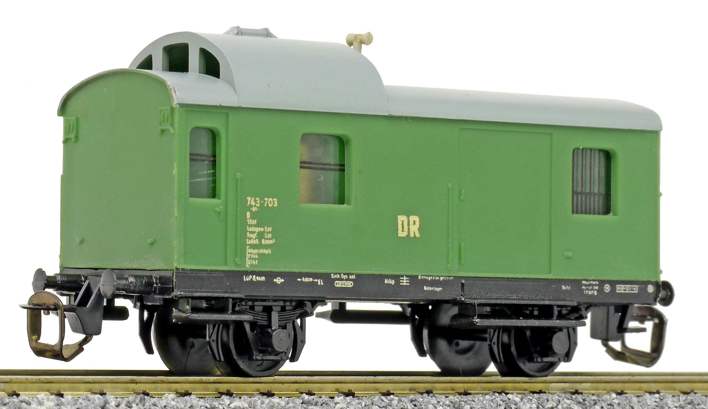 služební vůz pro nákladní vlaky zelený s šedou střechou
