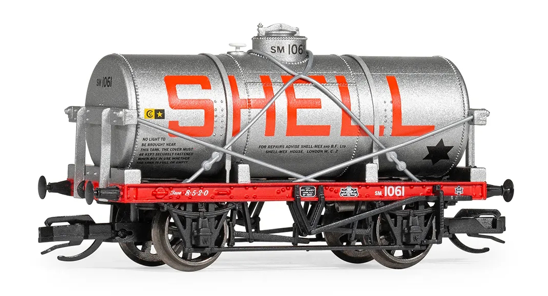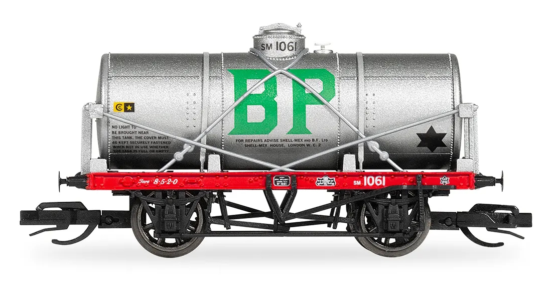 | kotlový vůz stříbrný s logy „BP“ a „SHELL“ |