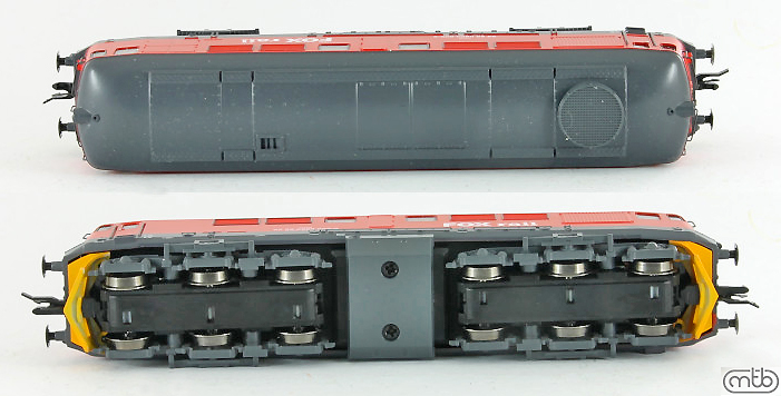 měřítko 1:120 - rozchod kolejí 12 mm osvětlení - 3 reflektory přepínatelné podle směru jízdy 6 hnaných náprav 0 bandážovaných náprav kinematika krátkého spřáhla (KKK) podle normy NEM 358 digitální rozhraní podle NEM 658 s konektorem PluX16 pojezd s kuličkovými ložisky 140 mm - celková délka modelu přes nárazníky 6 - celkový počet náprav nebo rozložení náprav 200 g - hmotnost netto - pouze model