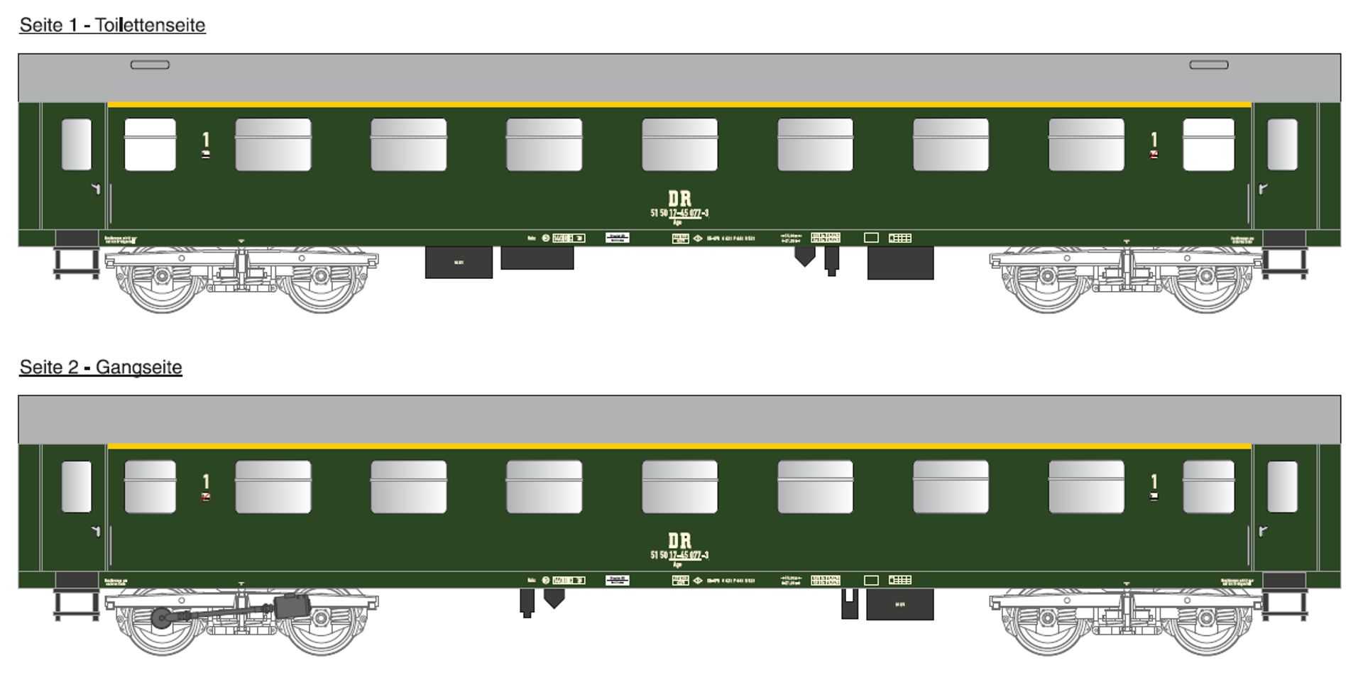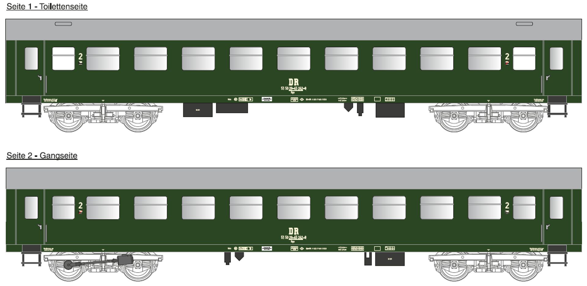 | modernizovaný osobní vůz zelený s šedou střechou 2. tř. (degradovaný z 1. tř.) |
