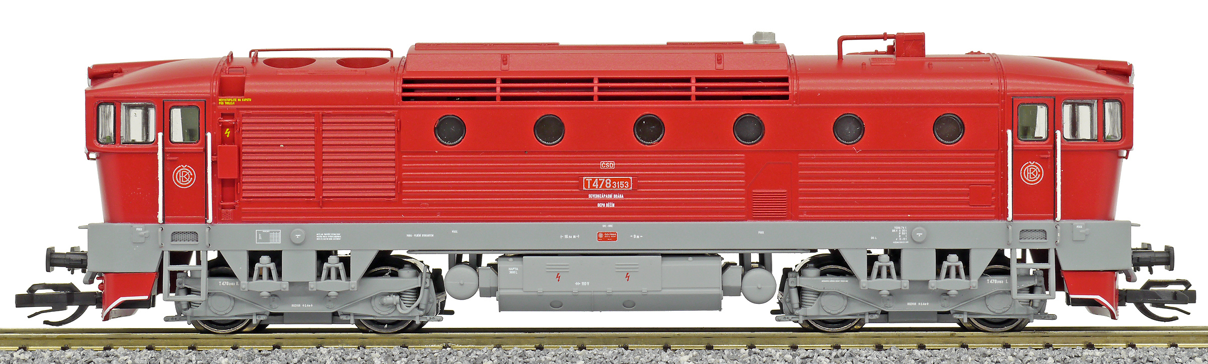 měřítko 1:120 - rozchod kolejí 12 mm osvětlení - 3 reflektory vpředu, 2 světla vzadu, přepínatelné podle směru jízdy 4 hnané nápravy 2 bandážované nápravy kinematika krátkého spřáhla (KKK) podle normy NEM 358 digitální rozhraní podle NEM 662 s konektorem Next18 zvukový generátor instalován lokomotivní digitální dekodér (DCC) 138 mm - celková délka modelu přes nárazníky 4 - celkový počet náprav nebo rozložení náprav 325 g - hmotnost brutto - model včetně prodejního obalu 165 g - hmotnost netto - pouze model