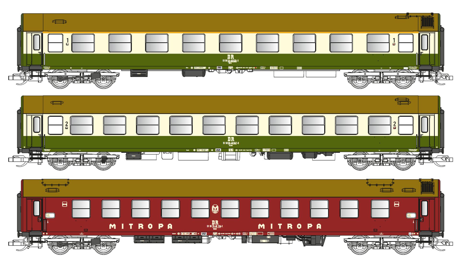 | lůžkový vůz rubínově červený s olivovou střechou |