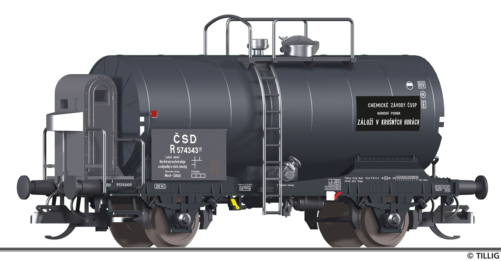| kotlový vůz černý s brzdařskou budkou „Chemické závody Záluží“ |