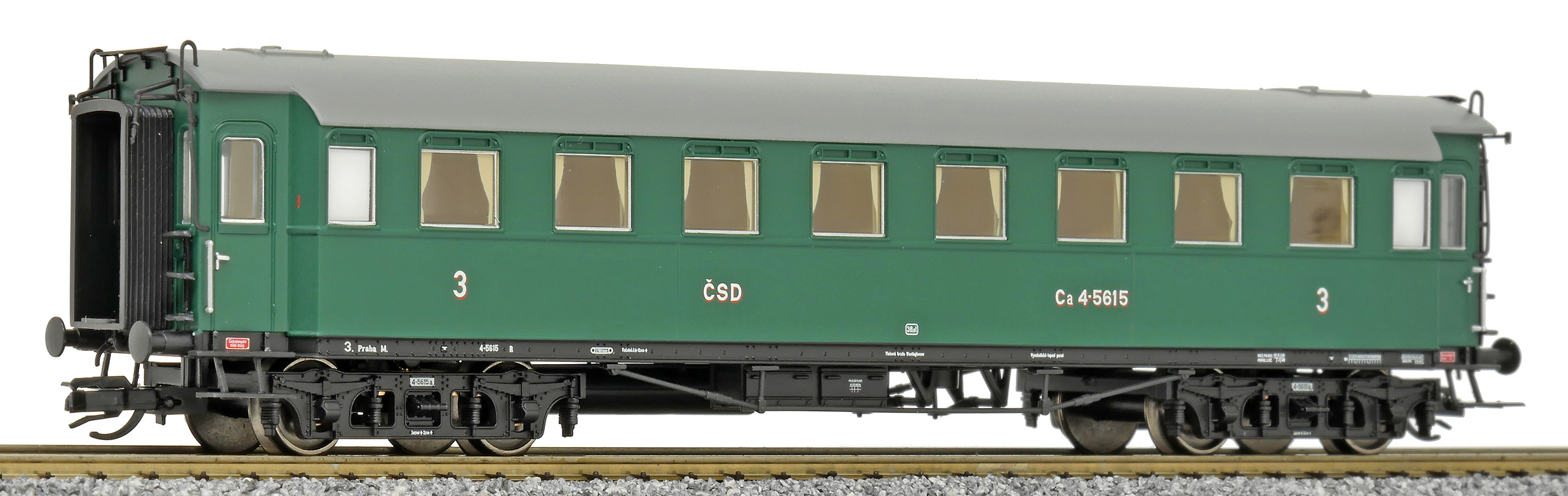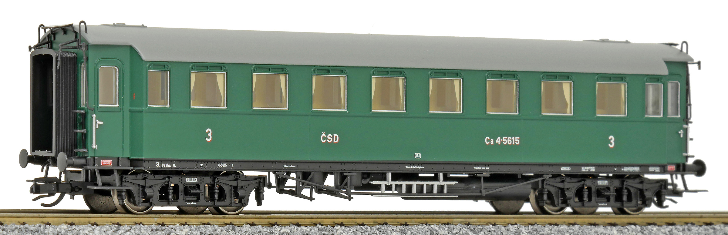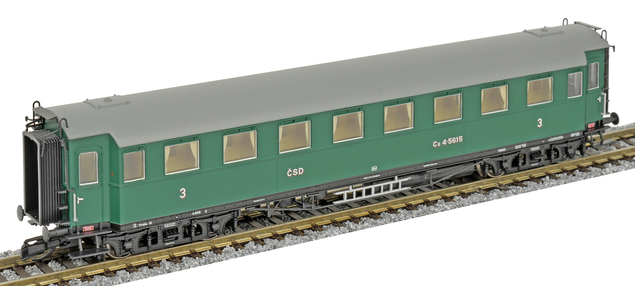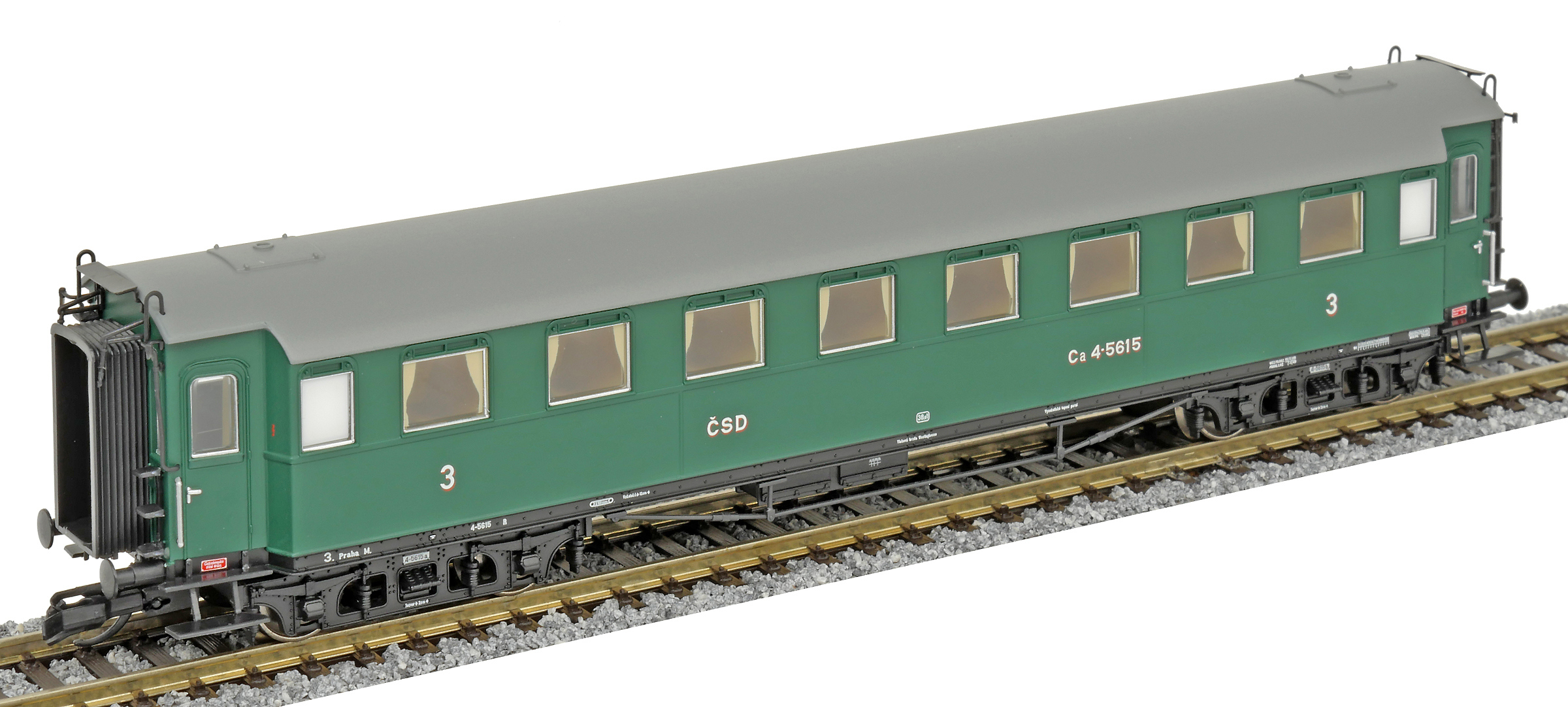 | oddílový osobní vůz zelený s šedou střechou 3. tř. |