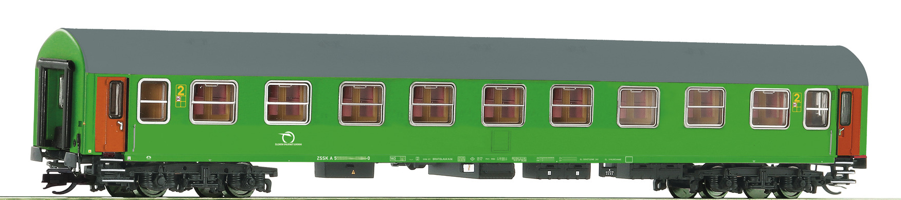 | rychlíkový vůz hráškově zelený s šedou střechou 2. tř. přeznačená |