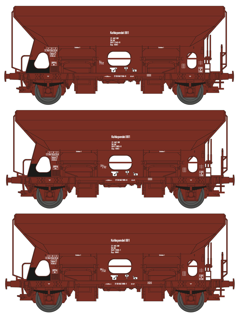 | set tří nákladních samovýsypných vozů kyvadlové přepravy „Kohlependel 691“ |