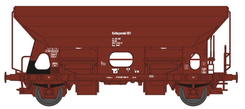 | nákladní samovýsypný vůz kyvadlové přepravy „Kohlependel 691“ |