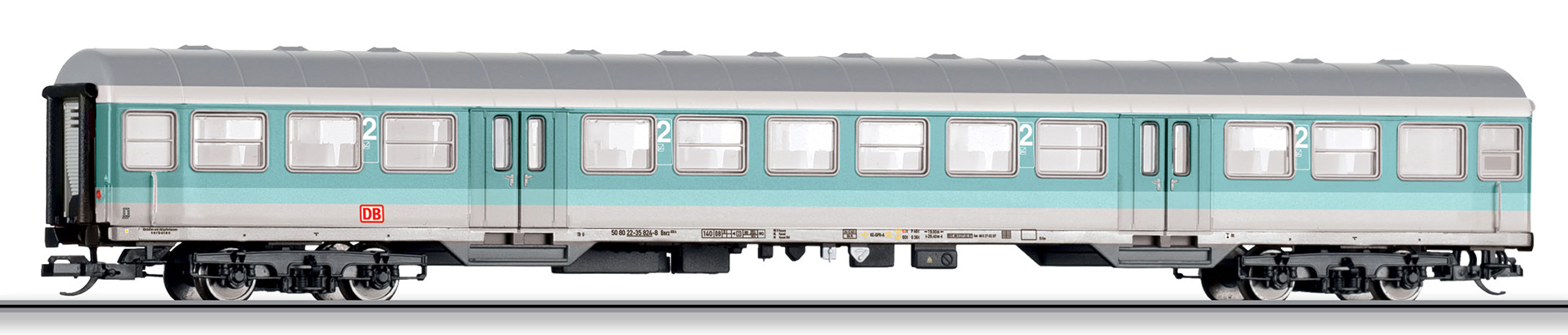 | rychlíkový vůz tyrkysový-bílý s šedou střechou 2. tř. |