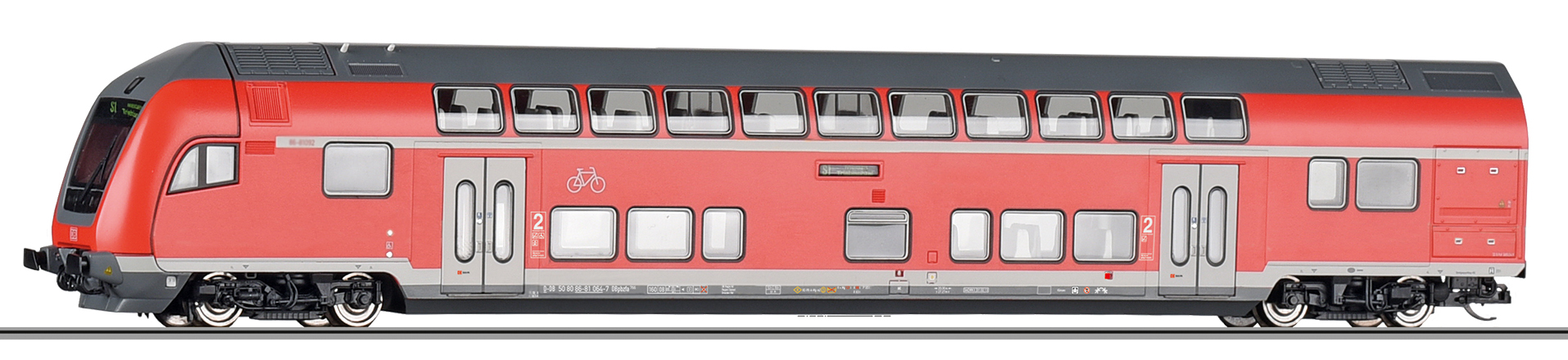 | řídící vůz v barevném schematu „DB Regio“ 2. tř. a s oddílem na kola |