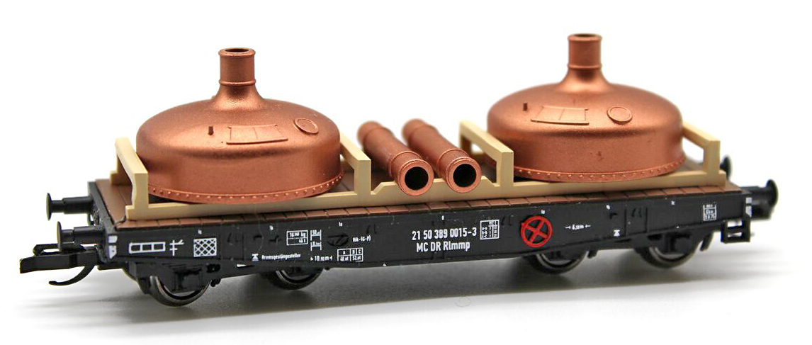 | plošinový nákladní vůz s pivovarskou meděnou varnou |