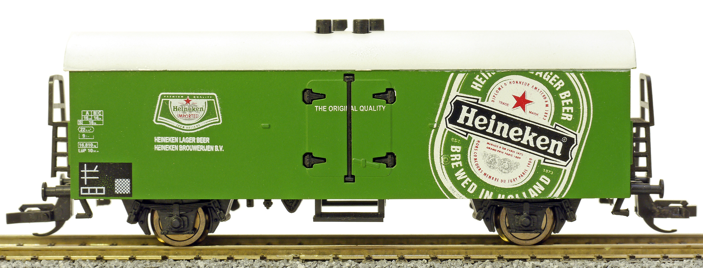 | nákladní chladící vůz zelený s bílou střechou „Heineken“ |