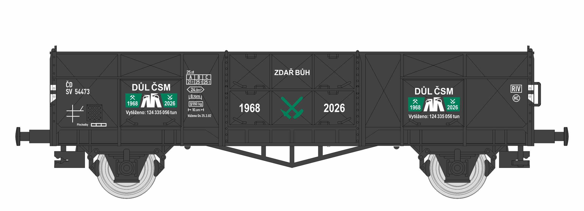 | otevřený nákladní vůz černý „DŮL ČSM“ 1968-2026 |