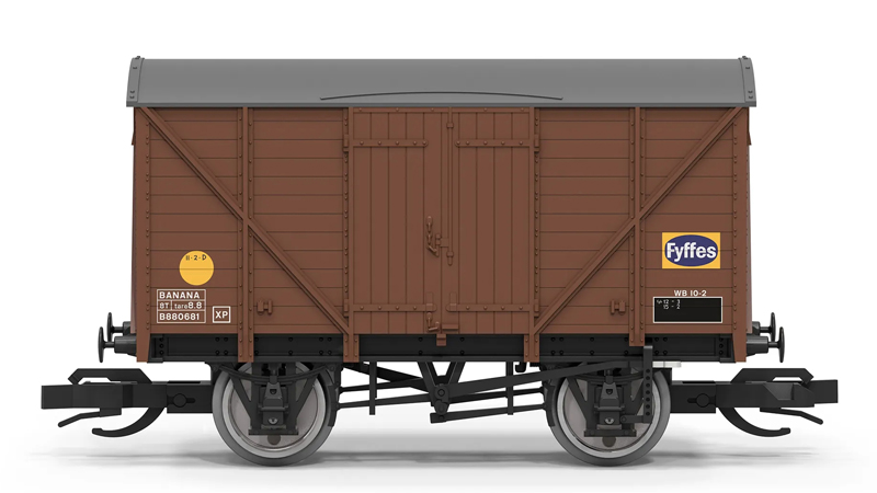 | krytý nákladní vůz hnědý s šedou střechou „BANANA“ |