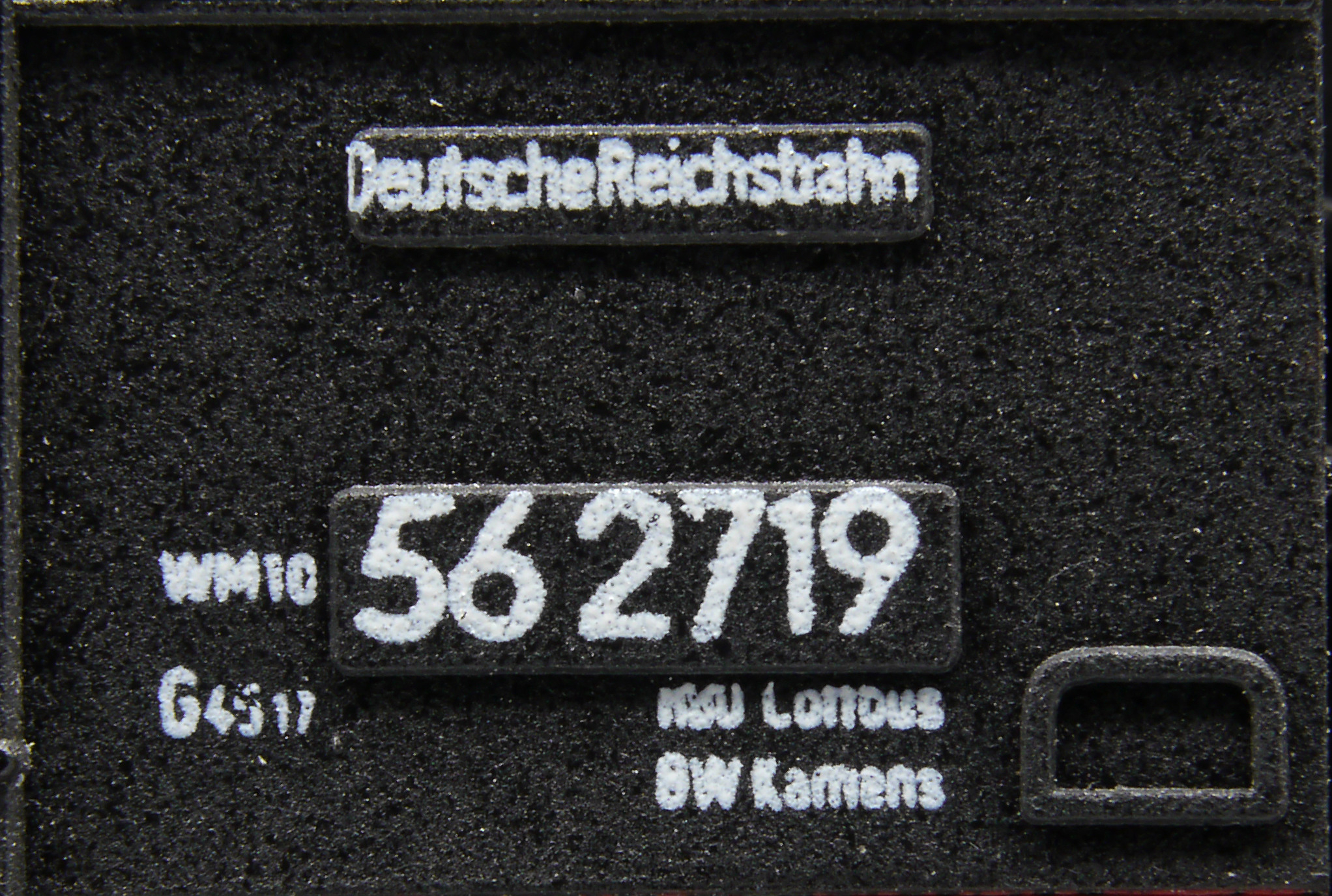 Kód   502298  [Lokomotivy] → [Parní] → [BR 56] → 502298: parní lokomotiva černá s červeným pojezdem „Eisenwerke West“