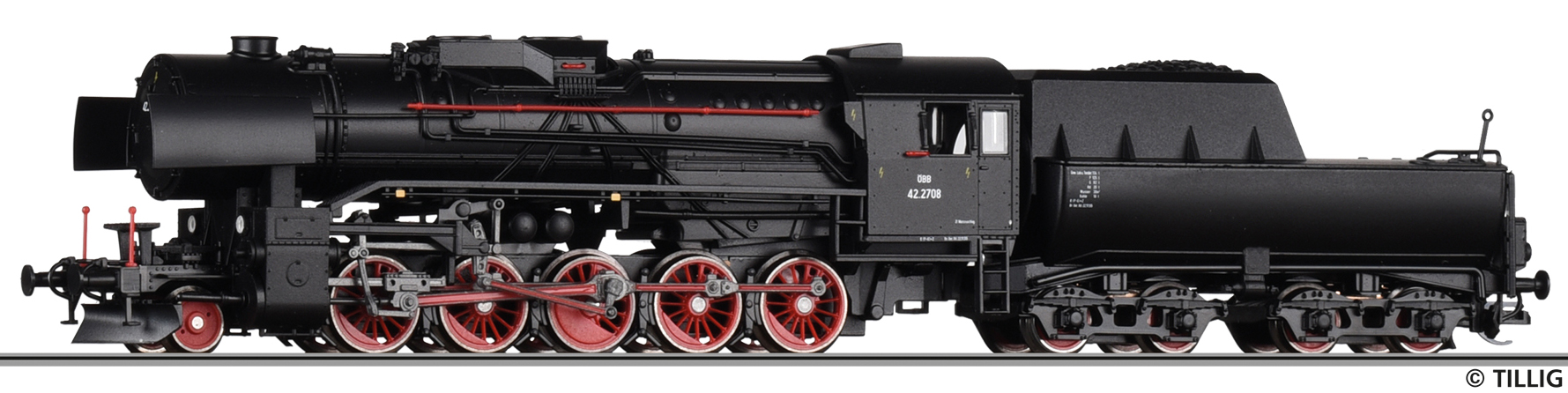 Kód   02062  [Lokomotivy] → [Parní] → [BR 42] → 02062: parní lokomotiva černá s červenými koly a kouřovými plechy