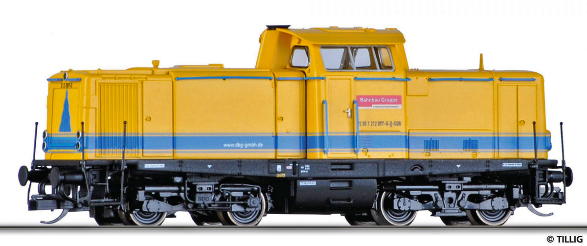 Kód   02592  [Lokomotivy] → [Motorové] → [V 100] → 02592: žlutá s modrým pruhem a černým pojezdem ″DB Bahnbau″