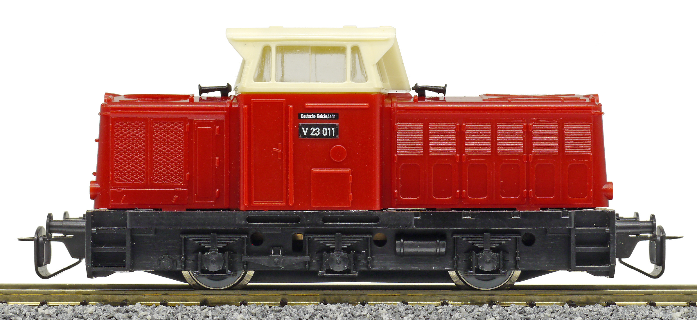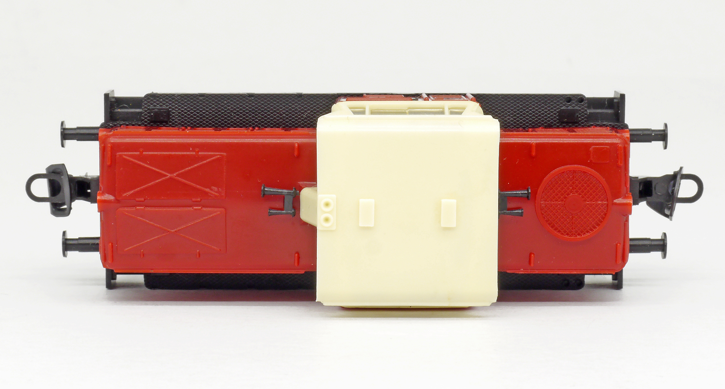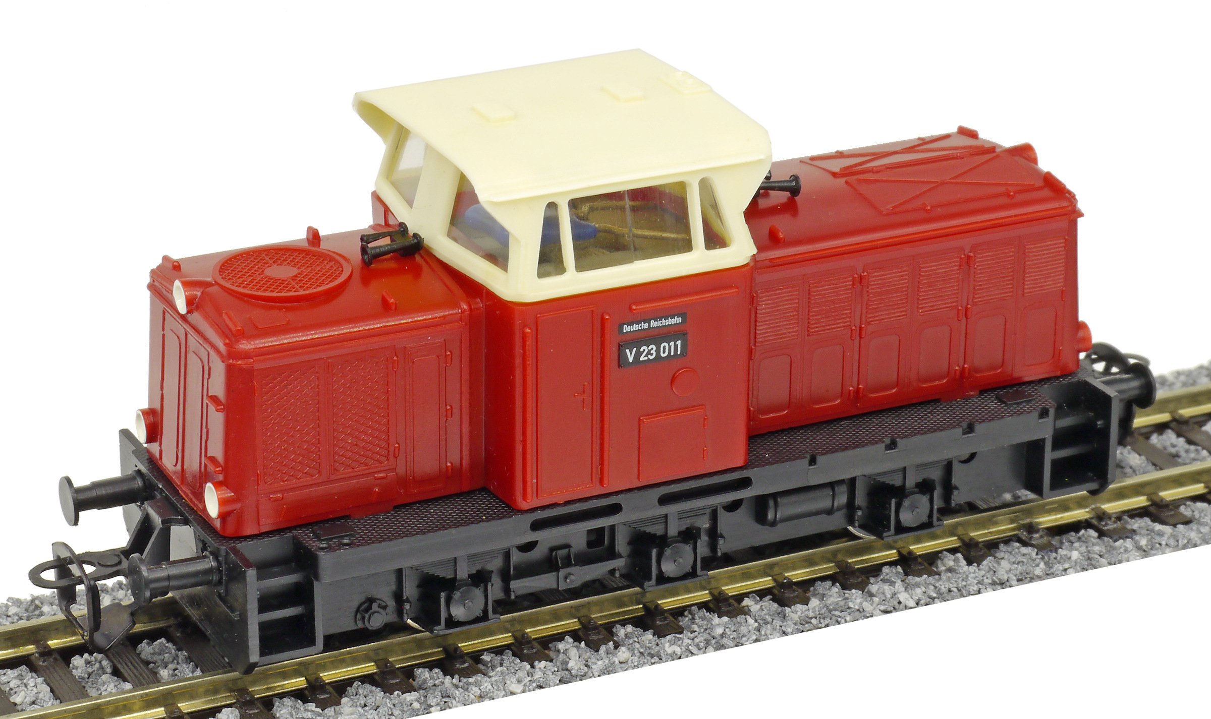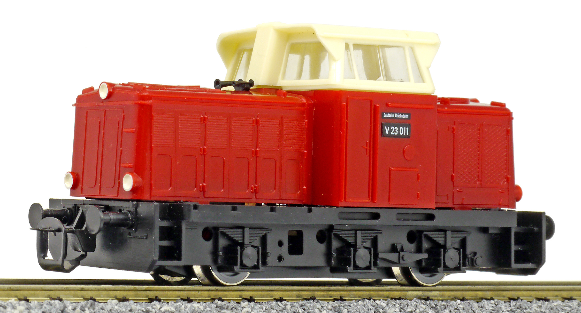 Kód   02611  [Lokomotivy] → [Motorové] → [T334] → 02611: dieselová lokomotiva červená s krémovými pruhy „Chemiekombinates Schwarza“