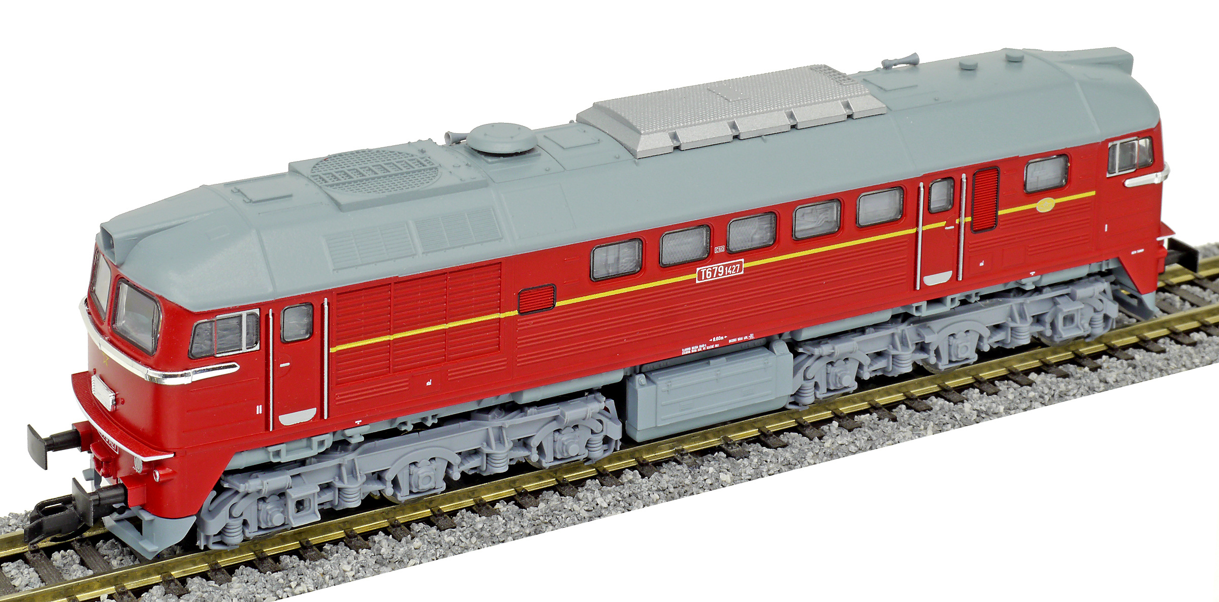 Kód   36279  [Lokomotivy] → [Motorové] → [BR 120] → 36279: červená s proužkem, světlešedá střecha a pojezd