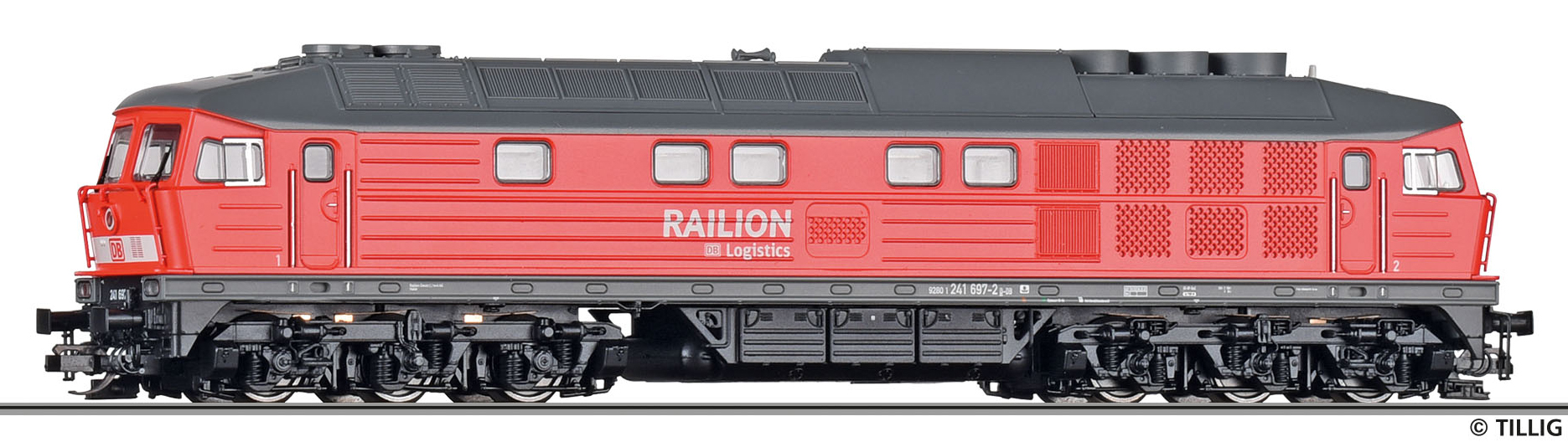 Kód   36206  [Lokomotivy] → [Motorové] → [BR 132] → 36206: dieselová lokomotiva červená s šedou střechou, černý pojezd, „Railion“