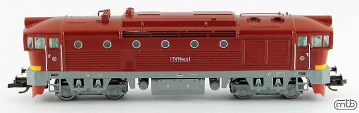 Kód   CD-753-006  [Lokomotivy] → [Motorové] → [T478.3 „Brejlovec”] → CD-753-006: dieselová lokomotiva vínově červená s krémovým pásem, šedé podvozky