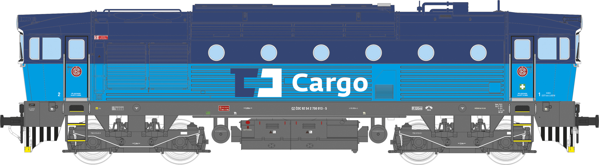 Popis   dieselová lokomotiva v korporátním modrém nátěru ČD Cargo