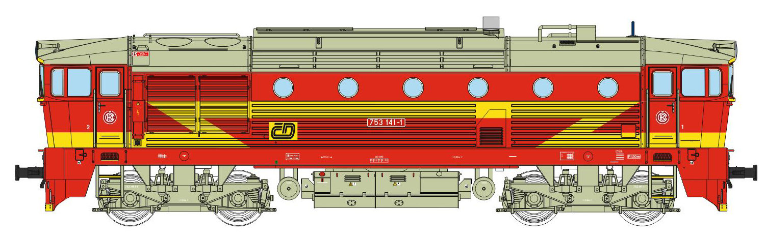 měřítko 1:120 - rozchod kolejí 12 mm osvětlení - 3 reflektory vpředu, 2 světla vzadu, přepínatelné podle směru jízdy 4 hnané nápravy 2 bandážované nápravy kinematika krátkého spřáhla (KKK) podle normy NEM 358 digitální rozhraní podle NEM 662 s konektorem Next18 setrvačník 138 mm - celková délka modelu přes nárazníky 4 - celkový počet náprav nebo rozložení náprav