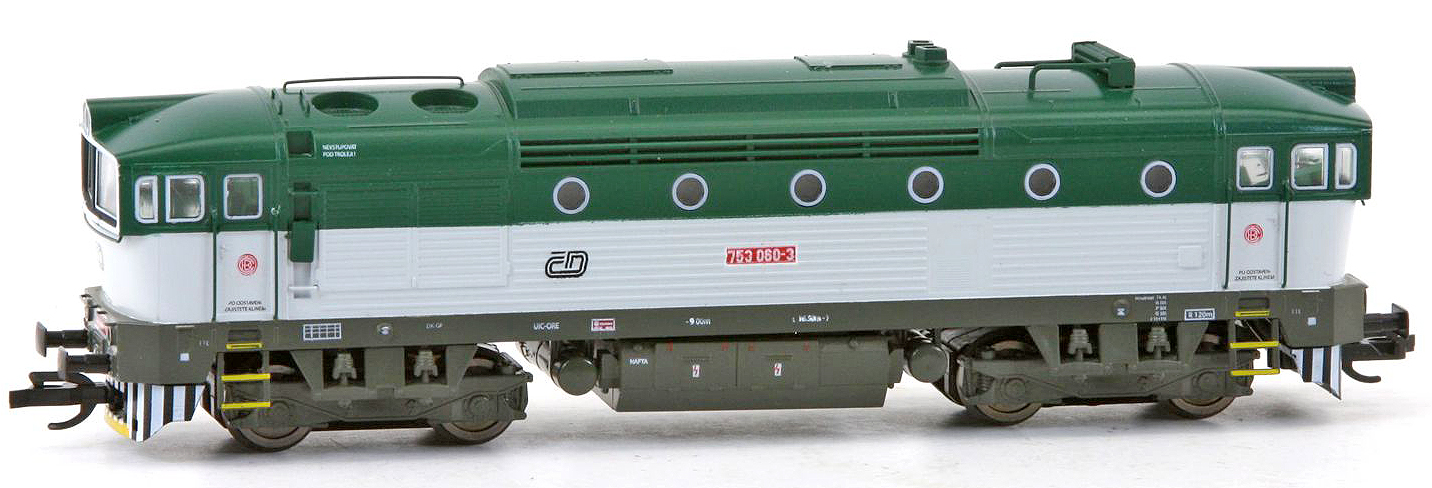 Kód   TT753-T113  [Lokomotivy] → [Motorové] → [T478.3 „Brejlovec”] → TT753-T113: dieselová lokomotiva bílá-zelená, šedý rám a pojezd