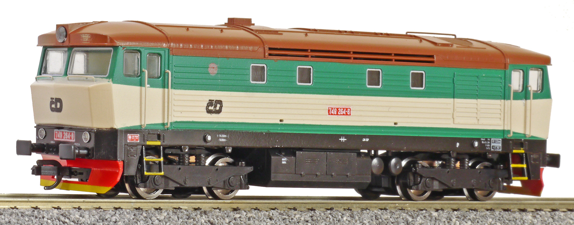 Kód   CD-749-260  [Lokomotivy] → [Motorové] → [T478.1 „Bardotka”] → CD-749-260: dieselová lokomotiva červená-modrá, hnědá střecha