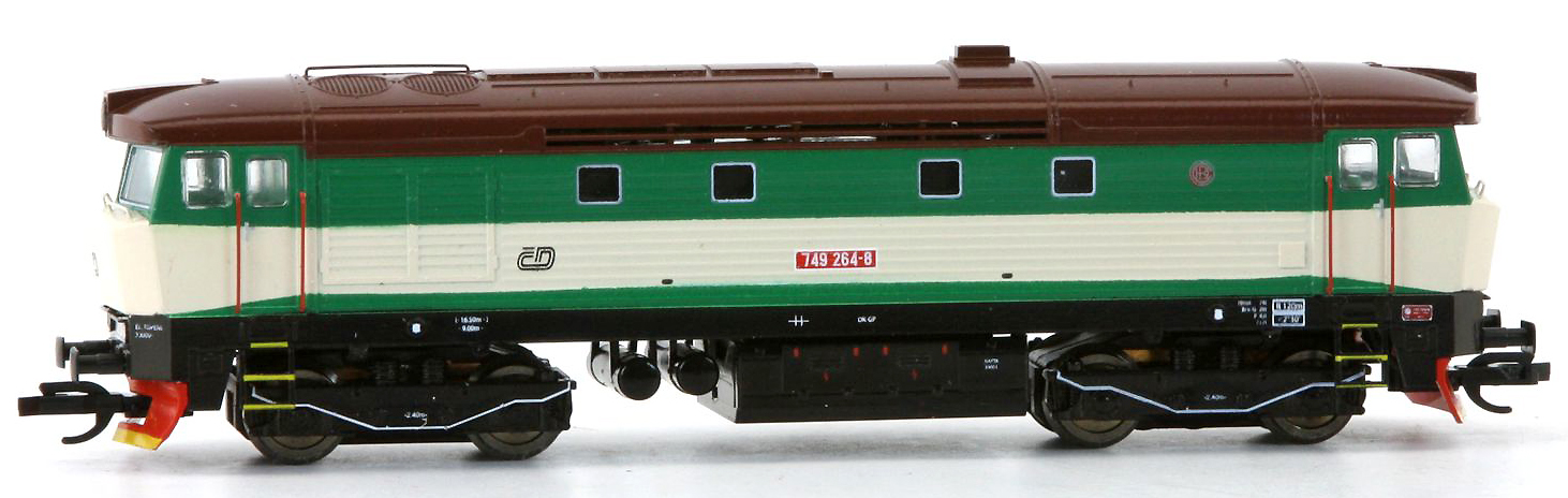 Kód   CD-749-248  [Lokomotivy] → [Motorové] → [T478.1 „Bardotka”] → CD-749-248: dieselová lokomotiva červená-slonová kost, červenohnědá střecha, černý rám a podvozky