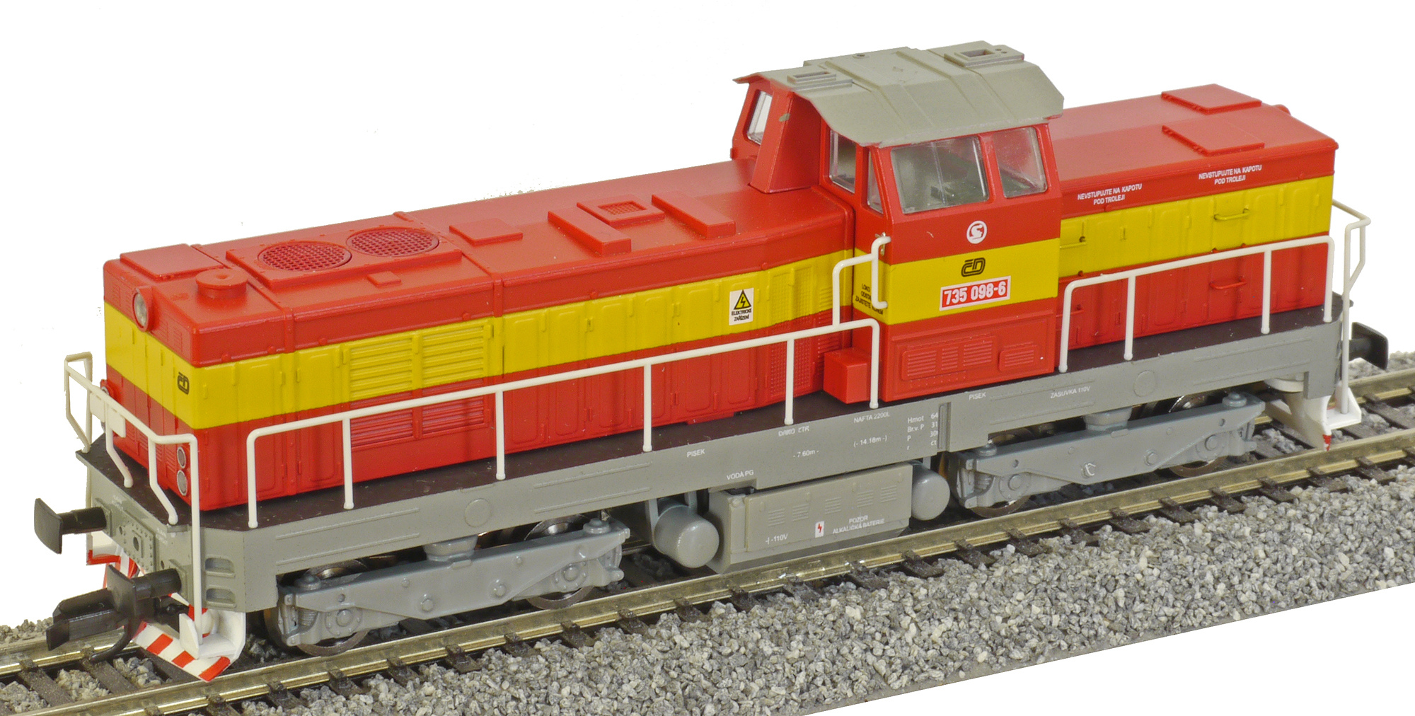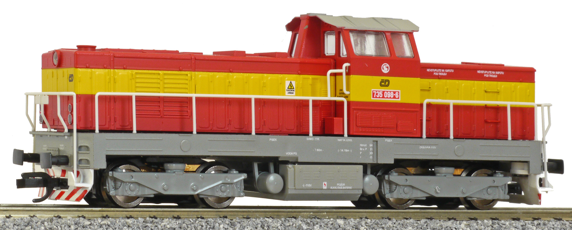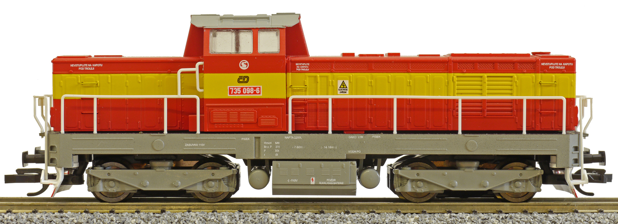 Popis   dieselová lokomotiva červená s výstražným pruhem, šedá střecha, rám a pojezd