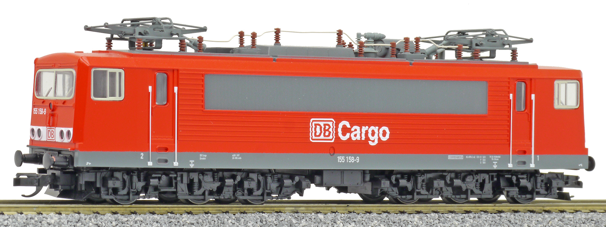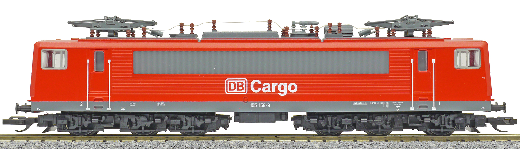 Kód   04332  [Lokomotivy] → [Elektrické] → [BR 155] → 04332: elektrická lokomotiva červená s tmavěšedým rámem a černými podvozky „DB Cargo“