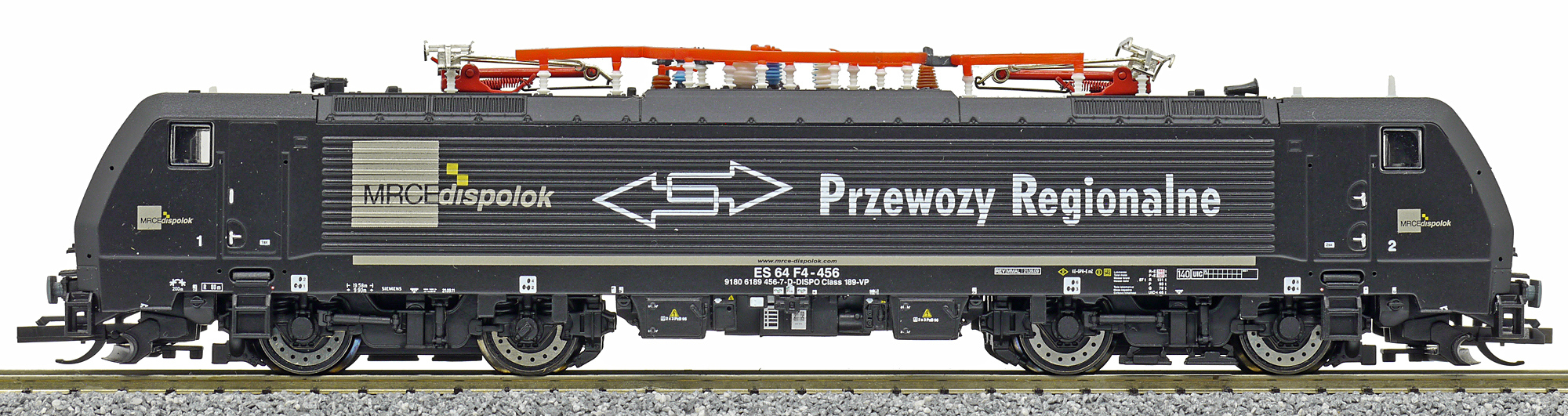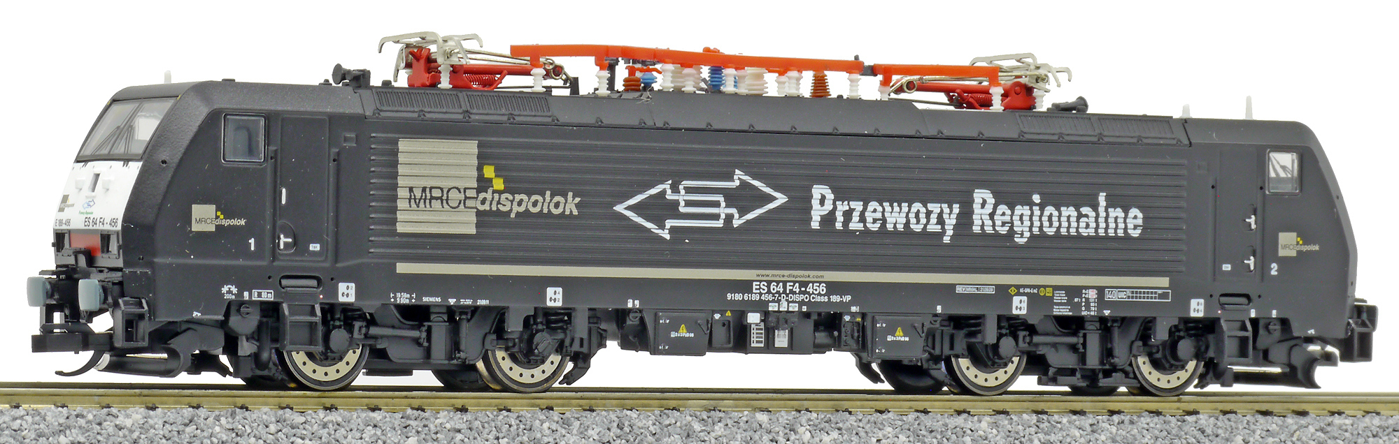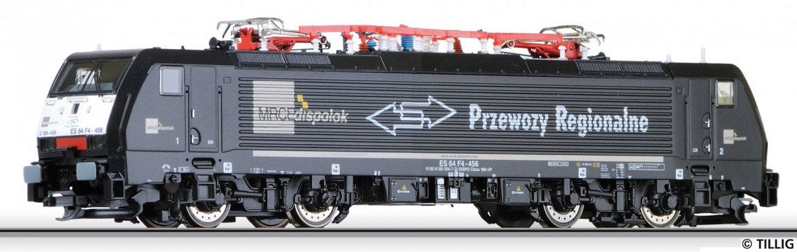 | elektrická lokomotiva černá s bílými čely PR (Prezewozy Regionalne) |