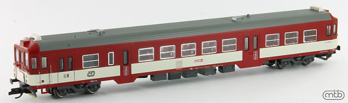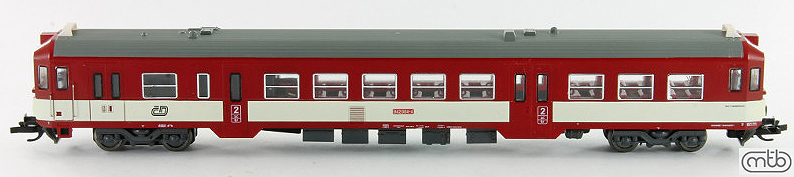 Kód   ČD-043-032  [Lokomotivy] → [Motorové vozy a jednotky] → [M273.2 (842)] → ČD-043-032: vložený/přívěsný vůz červený-slonová kost s šedou střechou