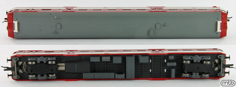 Popis   motorový vůz červený-slonová kost s šedou střechou