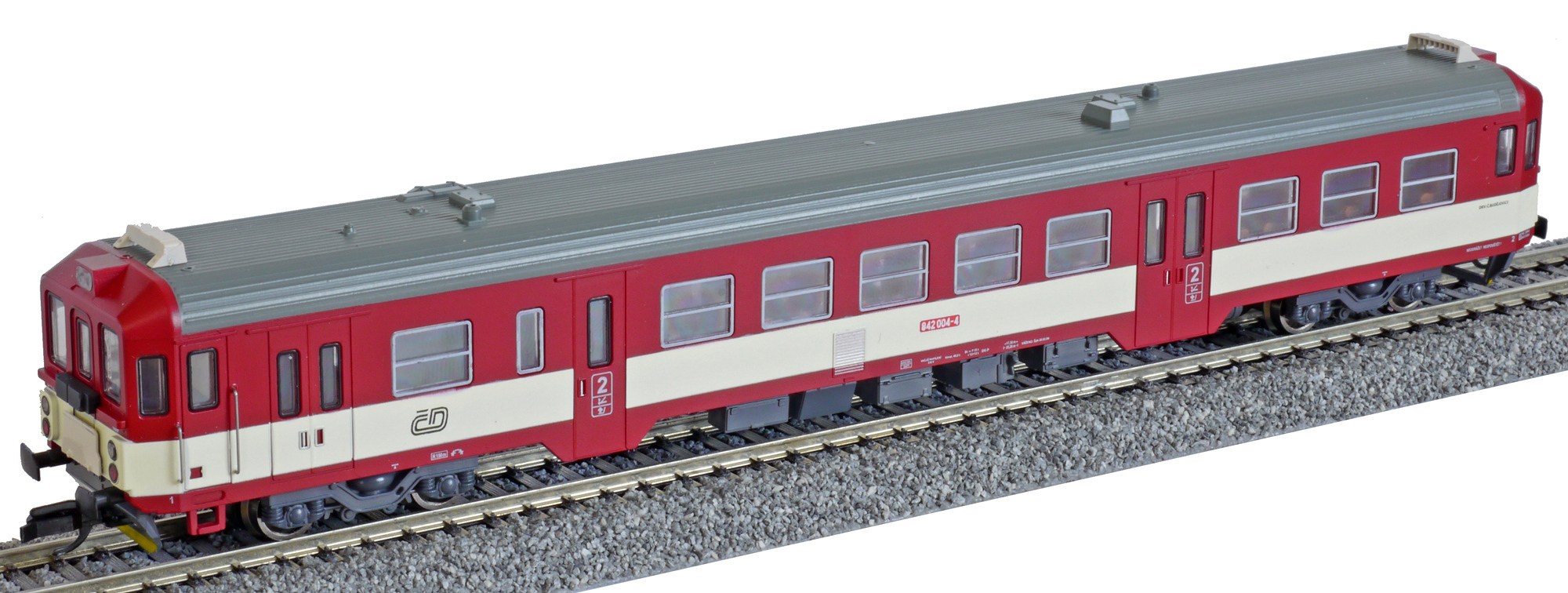 Kód   ČD-943-002  [Lokomotivy] → [Motorové vozy a jednotky] → [M273.2 (842)] → ČD-943-002: řídící vůz červený-slonová kost s šedou střechou