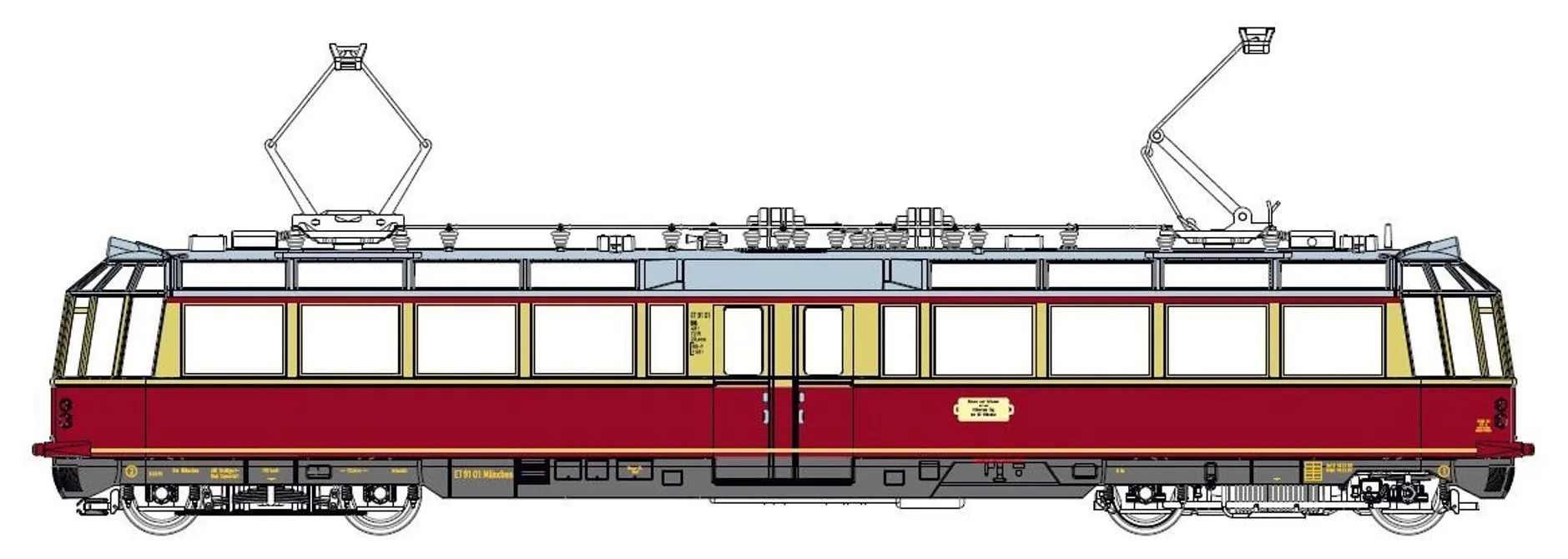 | elektrický vůz v barevné kombinaci červená-krémová „Gläserner Zug“ |