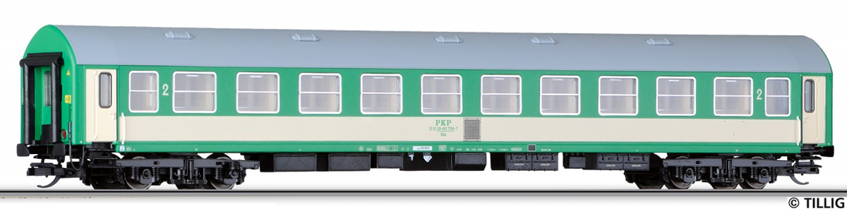 Kód   501263  [Osobní vozy] → [Rychlíkové] → [typ Y] → 501263: rychlíkový vůz v barvách  „TLK” s šedou střechou 2. tř.