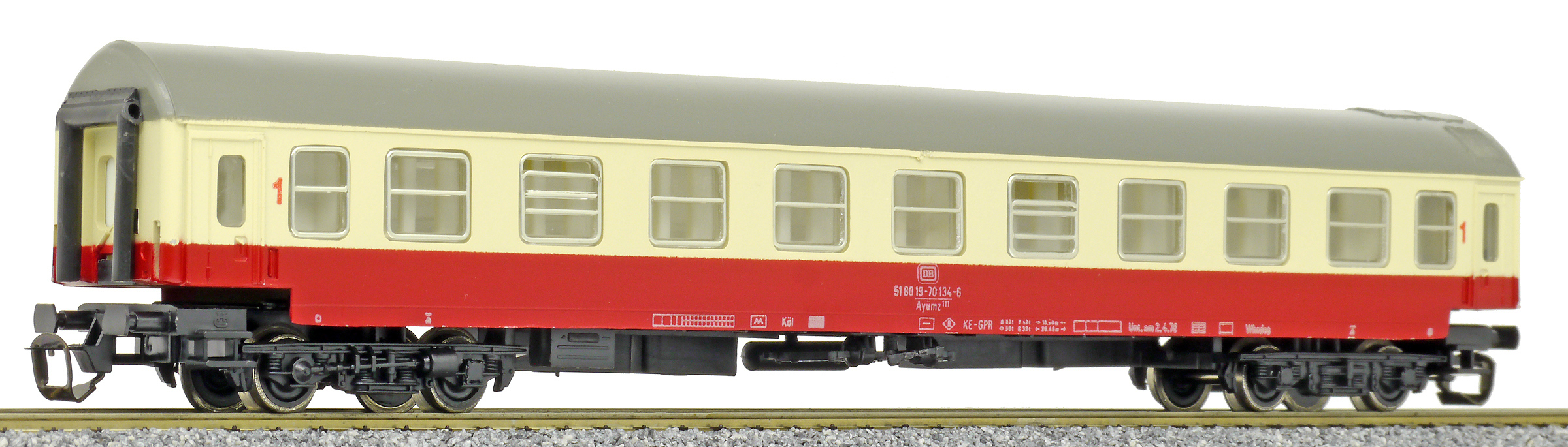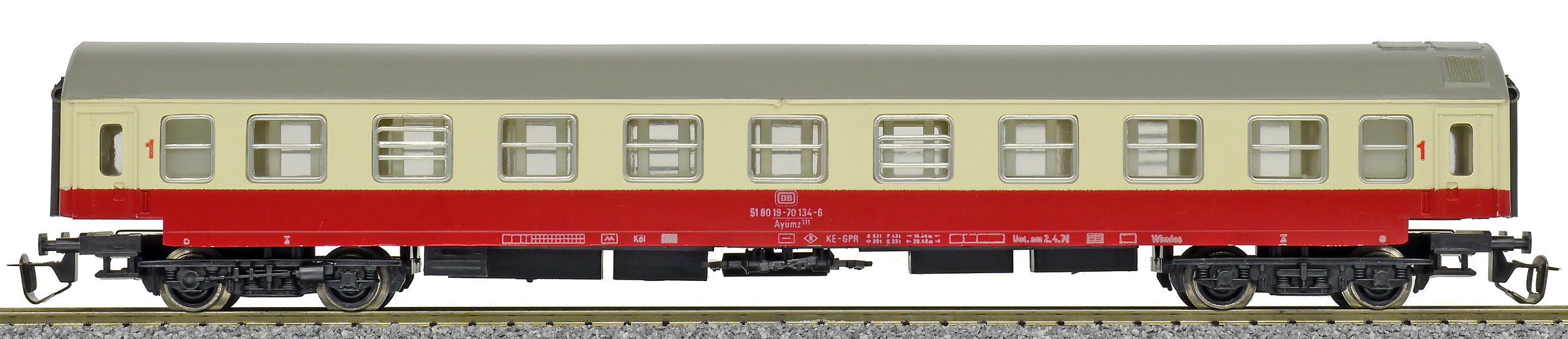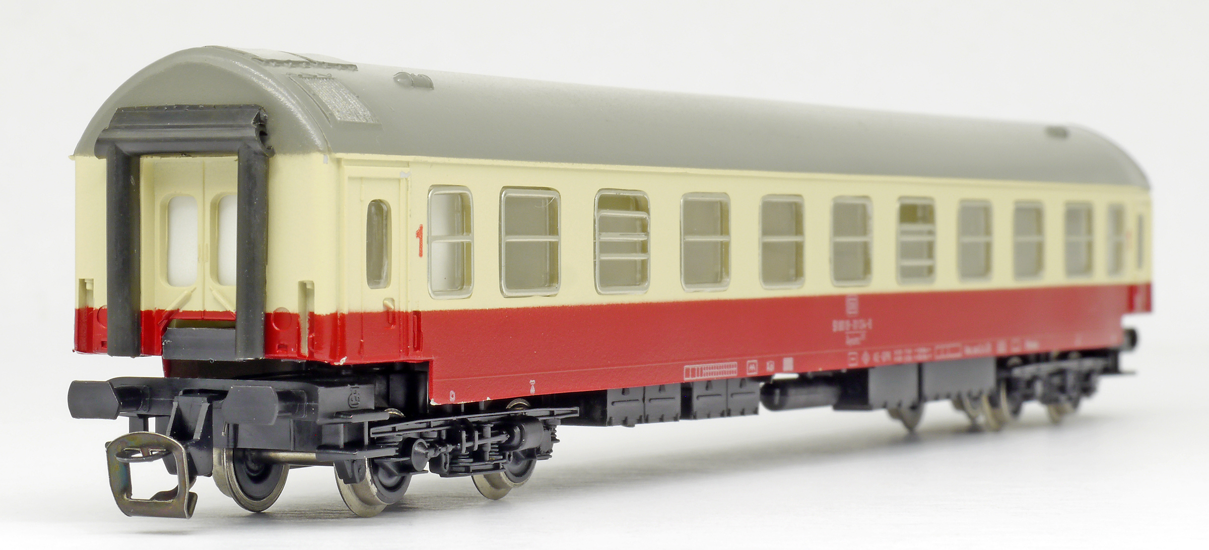 | rychlíkový vůz červený-slonová kost s šedou střechou 1. tř. |