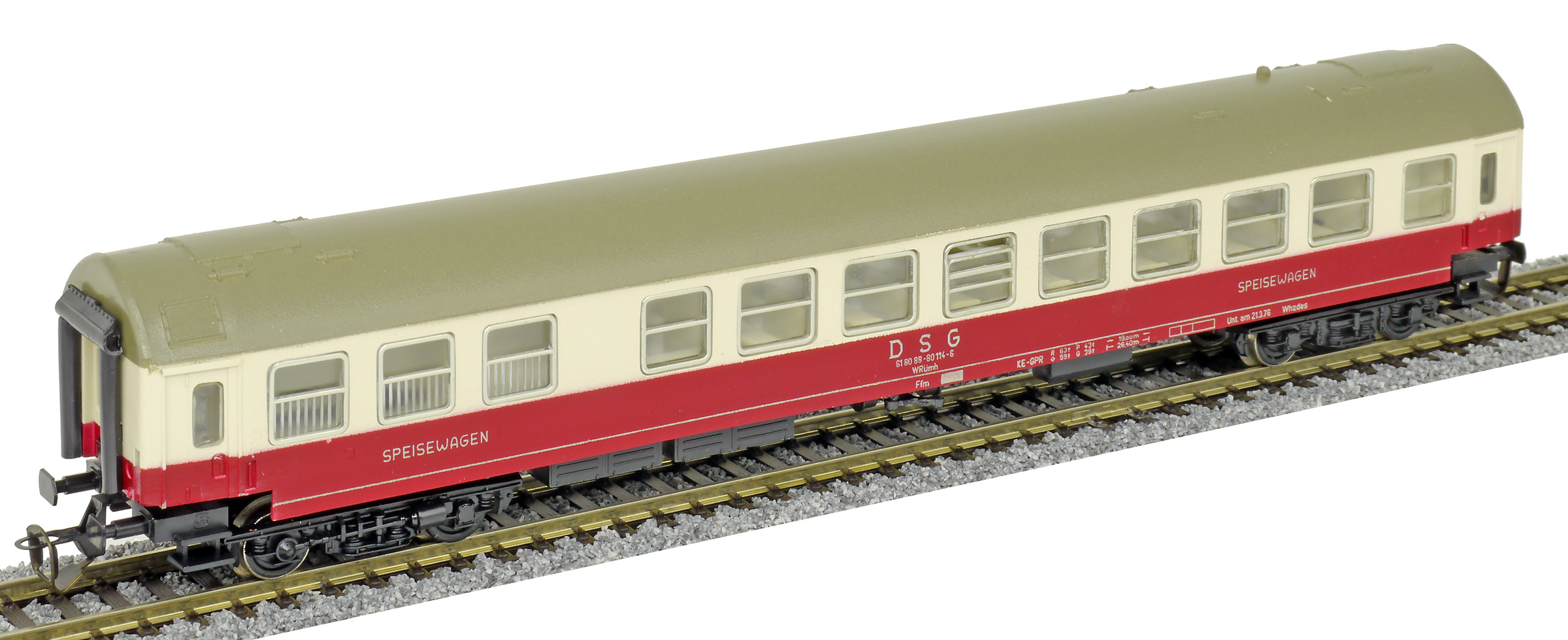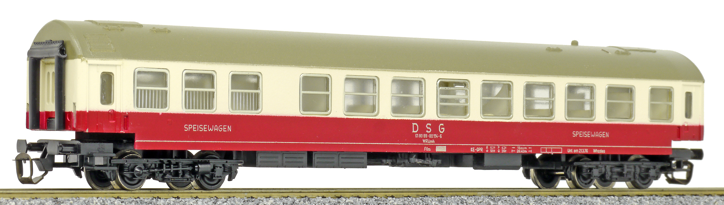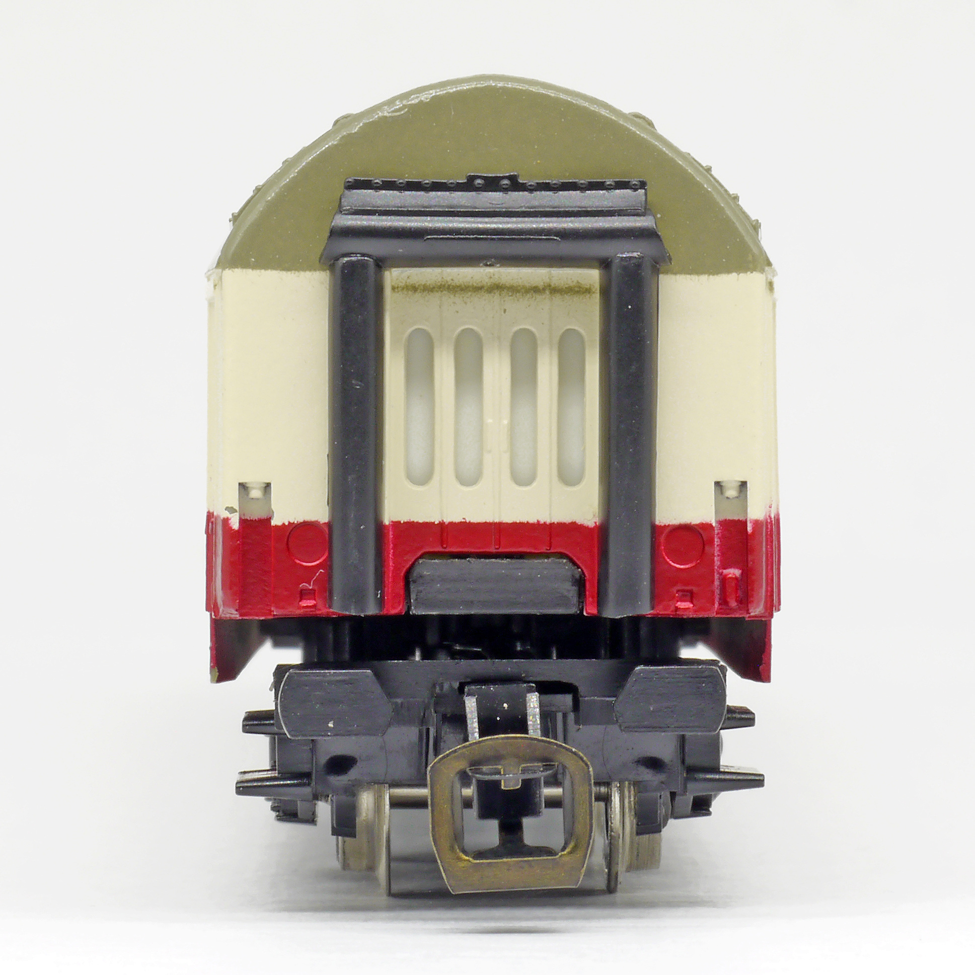 | jídelní vůz červený-slonová kost s šedou střechou |