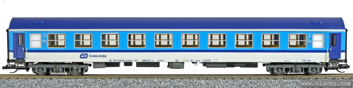 Kód   501251  [Osobní vozy] → [Rychlíkové] → [typ Y] → 501251: rychlíkový vůz modrý-bílý v barevném chematu „Najbrt“ 2. tř. se služebním oddílem