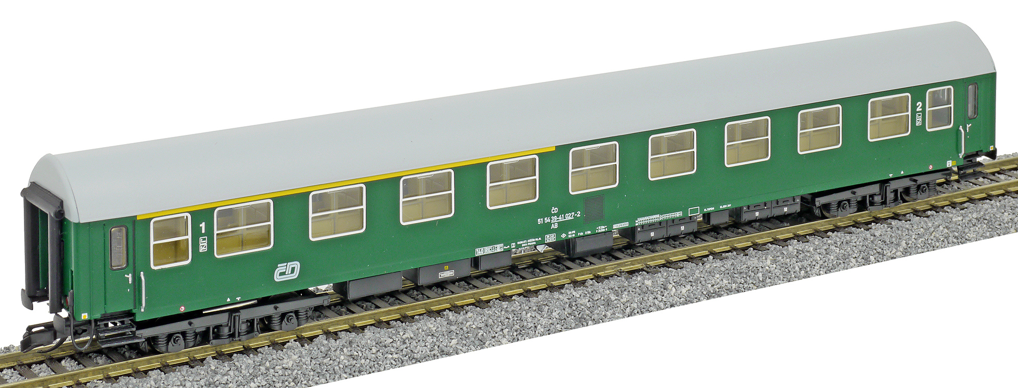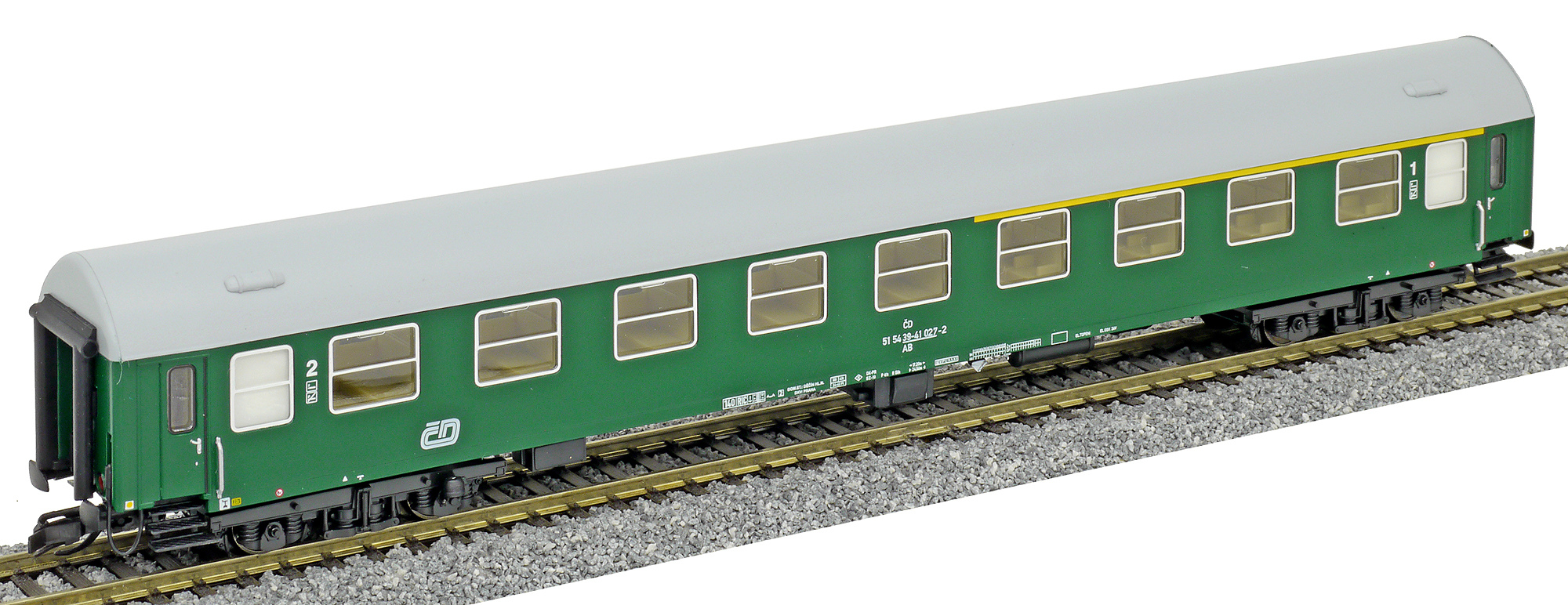 | rychlíkový vůz zelený s šedou střechou 1./2. tř. |