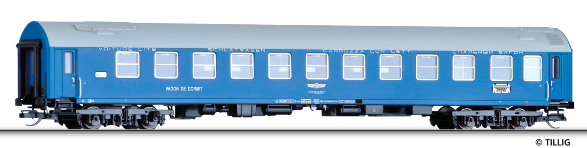 Kód   01452   ze SETu   [Osobní vozy] → [Rychlíkové] → [typ Y] → 01452: lůžkový vůz modrý s šedou střechou „Touristenexpress“