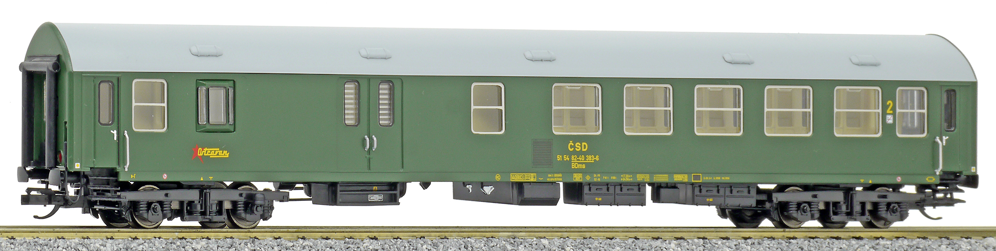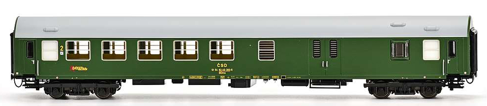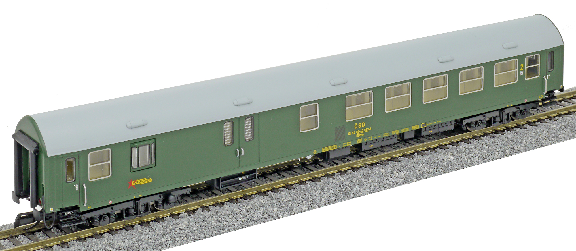 | rychlíkový vůz zelený s šedou střechou 2. tř. a zavazadlovým oddílem „Ostravan“ |